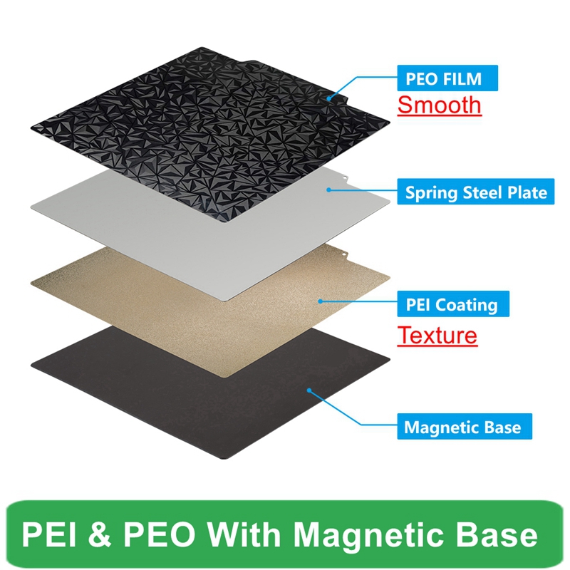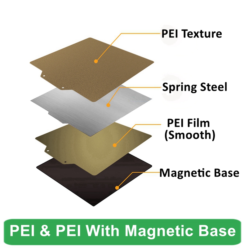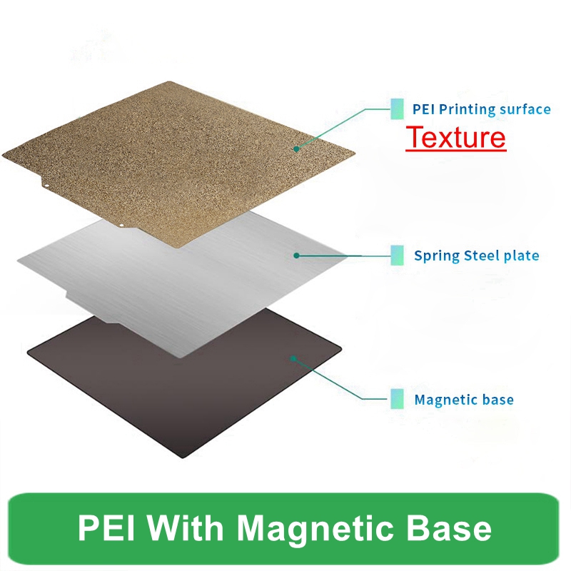* Сторона PEI-это текстурная поверхность, легко удалить форму без каких-либо инструментов. Может печатать большую часть нити