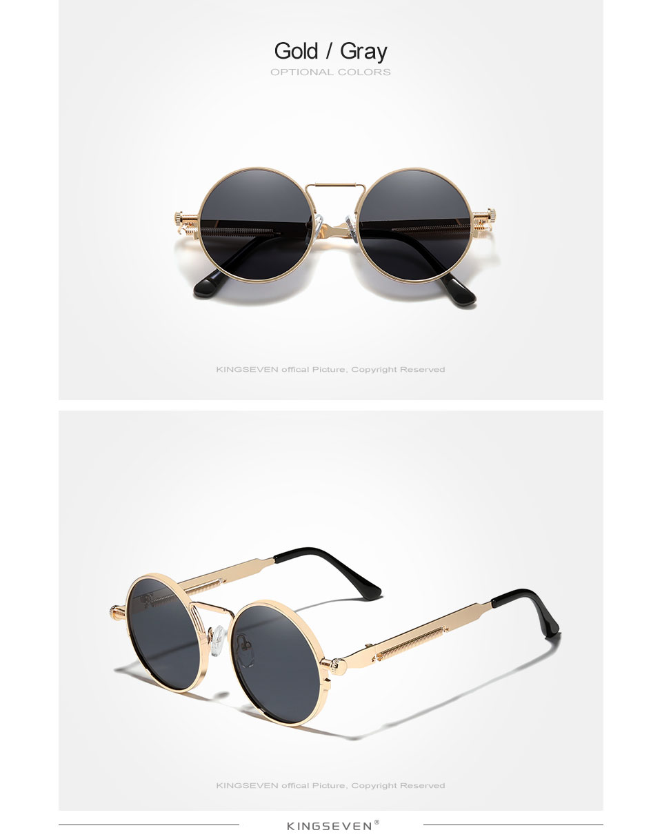 KINGSEVEN, высокое качество, Готический стимпанк, солнцезащитные очки, поляризационные, для мужчин и женщин, фирменный дизайн, Ретро стиль, круглая металлическая оправа, солнцезащитные очки
