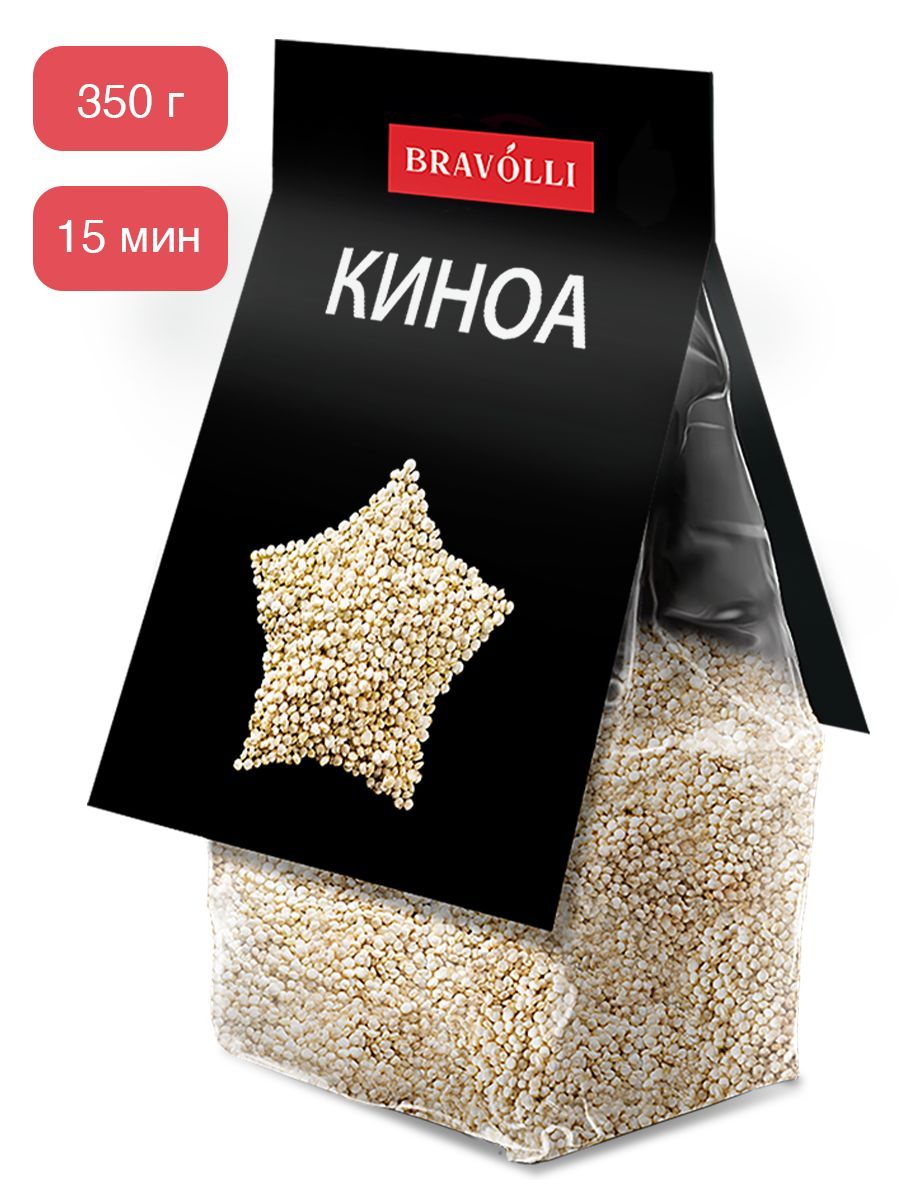 Описание: Киноа – очень древняя культура, инки начали выращивать ее более 5000 лет назад, назвав «божественным зерном» за силу, которую киноа дарила людям. Киноа имеет запах свежей травы, и у нее приятный вкус. Она может стать оригинальной заменой рису, булгуру и другим традиционным крупам в супах, салатах, гарнирах. В перуанской кухне она традиционно используется для приготовления вторых блюд, например, кинотто, а также для супов и в качестве панировки. При варке киноа увеличивается в объеме примерно в четыре раза, ее центр становится прозрачным, а вокруг образуется маленькое колечко-корона. Киноа можно проращивать. Попробуйте белую киноа от бренда Bravolli - диетическую крупу, идеальную для полноценного правильного питания (ПП), вегетарианцев, веганов и худеющих. Белый злак является ценным источником витаминов, клетчатки и микроэлементов. Крупа полностью натуральная, не содержит ГМО. Углеводы в составе обеспечат вас энергией на целый день. Зерна содержат не только углеводы, но и белок, который необходим для роста мышечной массы. Пищевые волокна в крупе улучшают пищеварение и оздоравливают микрофлору кишечника. По содержанию витаминов и минералов киноа превосходит все известные крупы. Все это делает наш товар лучшим выбором для всех, кто заботится о состоянии своего организма. Универсальная зерновая культура поможет вам приготовить разные блюда на домашней кухне. Это идеальная крупа для приготовления аппетитных супов и гарниров. Можно даже сделать десерт на основе киноа. Просто прорастите зерна и сделайте смесь со свежими фруктами или ягодами. А еще можно сварить кашку для здорового утреннего завтрака. Варка занимает всего 15 минут в подсоленной воде на слабом огне. Этот полезный и вкусный продукт - отличный подарочный вариант для всех, кто предпочитает здоровое питание, но при этом хочет питаться разнообразно и вкусно.