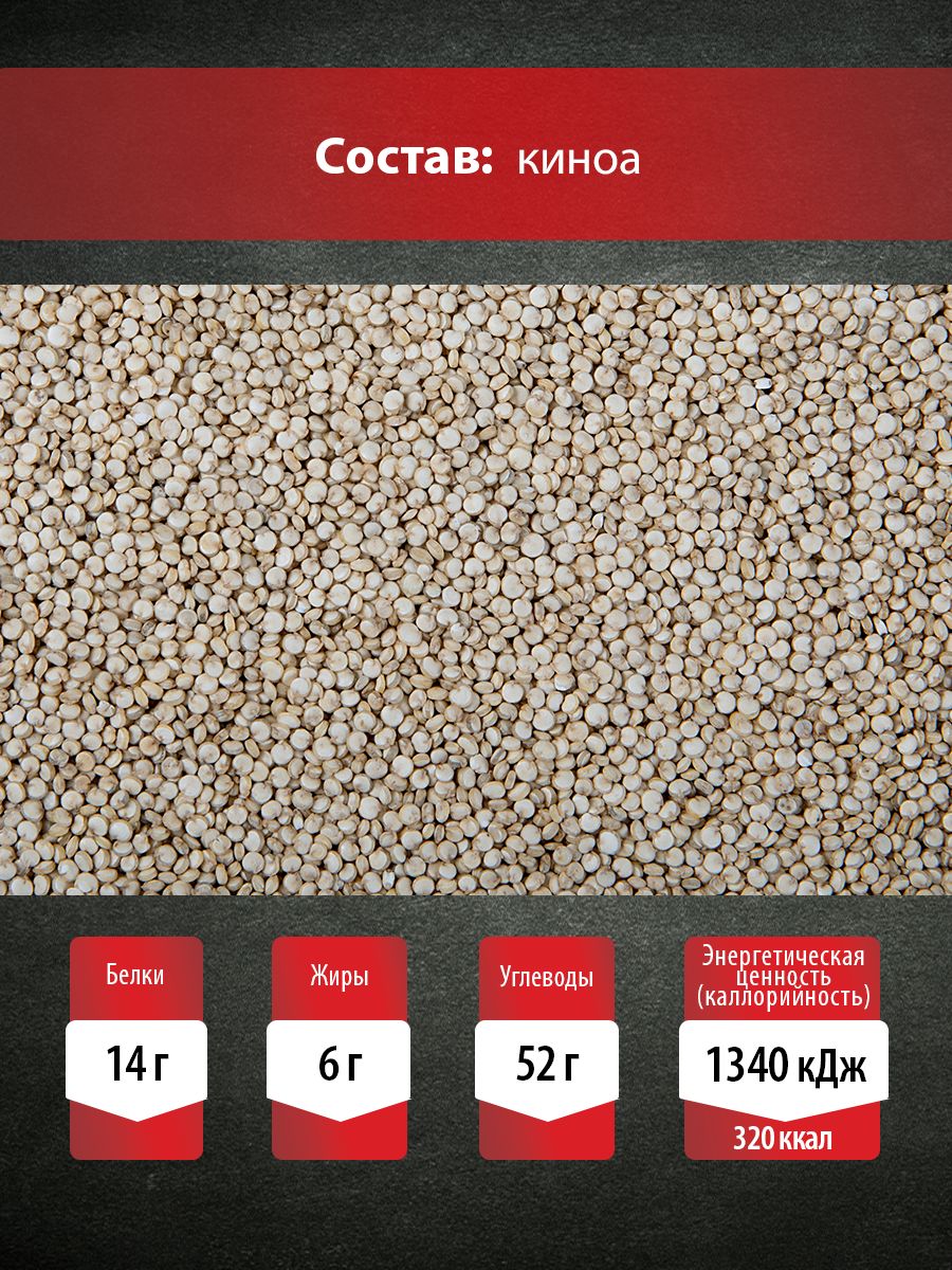 Описание: В киноа удивительно много белка. Злак содержит набор необходимых аминокислот и может компенсировать отсутствие мяса в рационе вегетарианцев. Вот почему ее часто можно встретить в магазинах здорового питания. Готовится киноа всего 15 минут, ею можно заменить многие крупы или готовить ее с рисом, булгуром или другими крупами, а также с овощами и фруктами. Киноа идет в гарниры и салаты, в пловы и супы, в мюсли и десерты, из нее делают макароны, спагетти и даже пекут хлеб. Киноа можно проращивать и подавать на завтрак с орехами, ягодами и йогуртом.