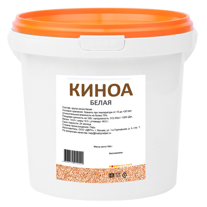 Киноа крупа белая HOBBYHELPER в ведре (700г)