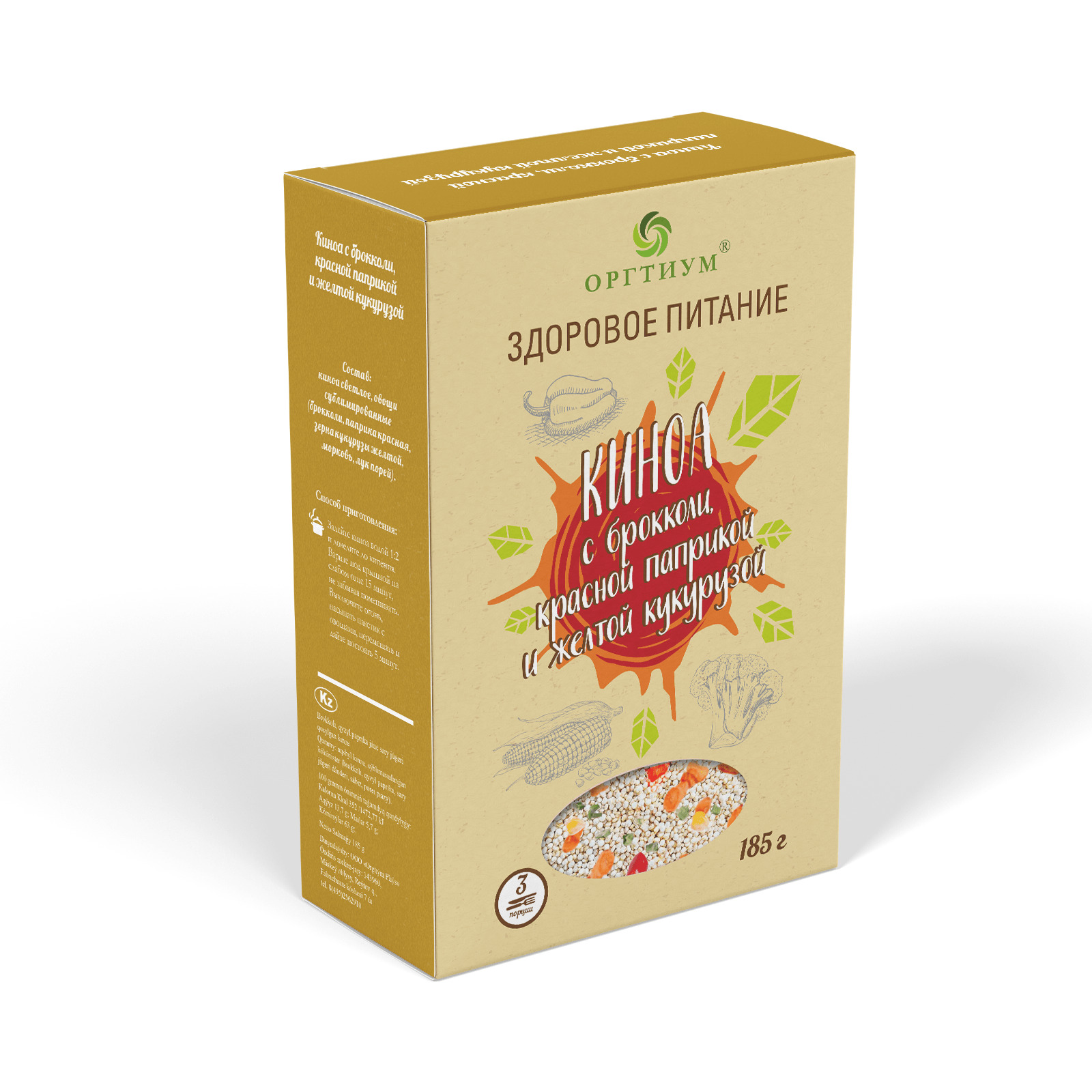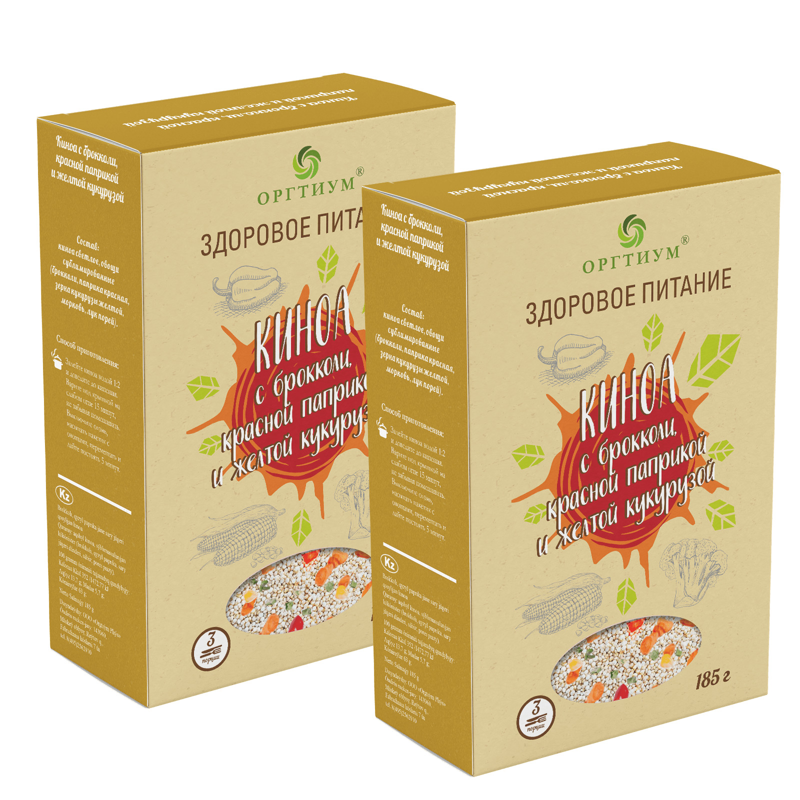 Киноа с брокколи, красной паприкой и желтой кукурузой, Оргтиум 2 шт по 180 г