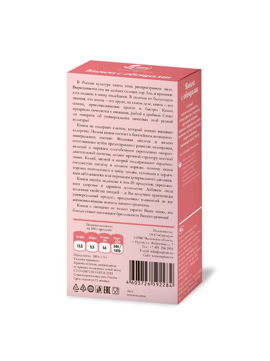 Киноа с овощами Оргтиум, 180г