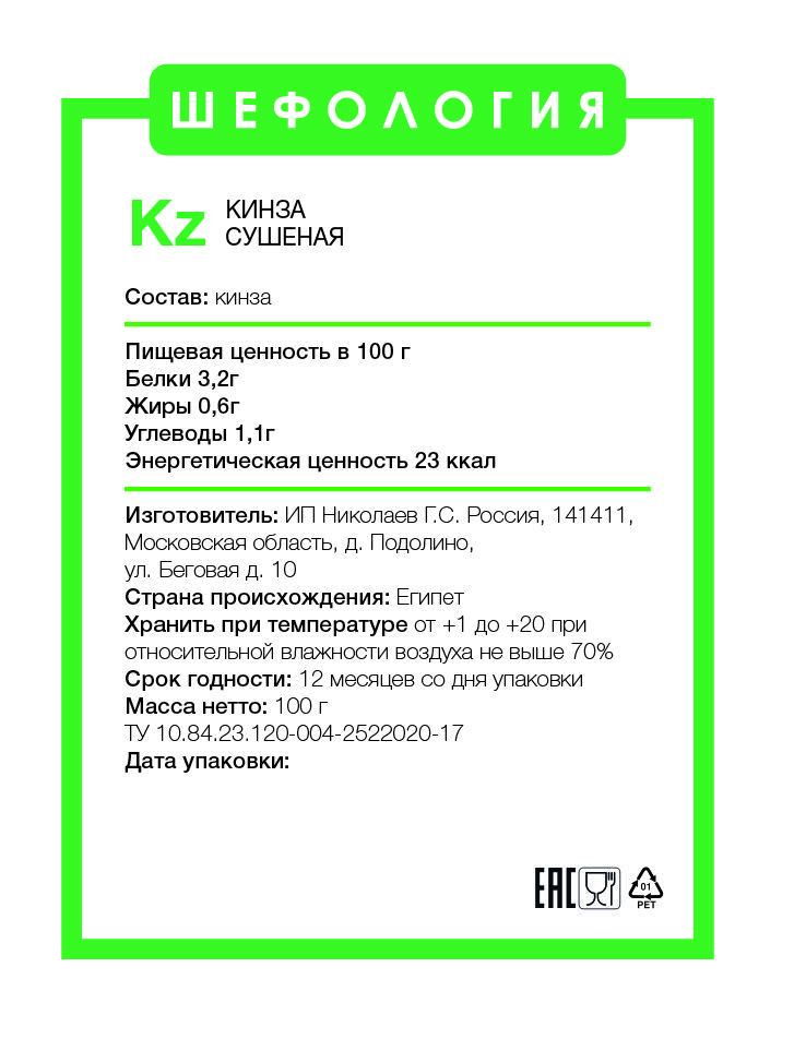 Специи и пряности Кинза