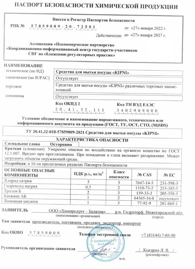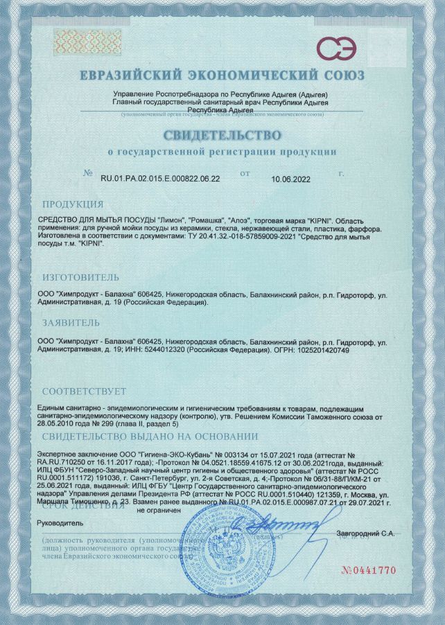 Кипни Средство для мытья посуды густое с ароматом Алое 485 мл Kipni