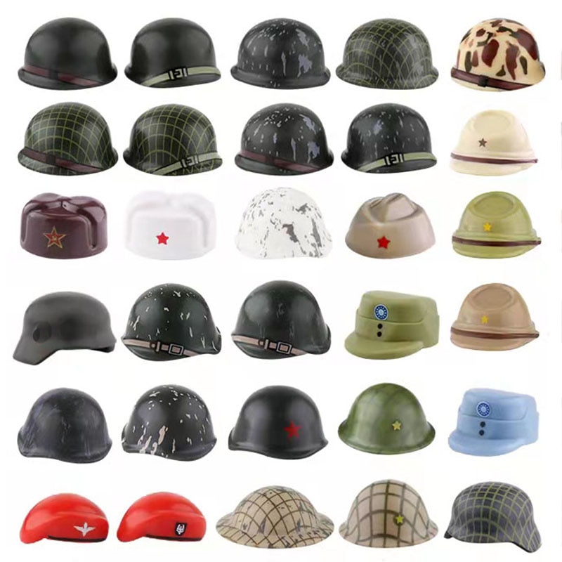 Кирпичные детали с принтом, военный шлем для немецких солдат, детали оружия США, шляпы, британский берет, советский конструктор, фигурка