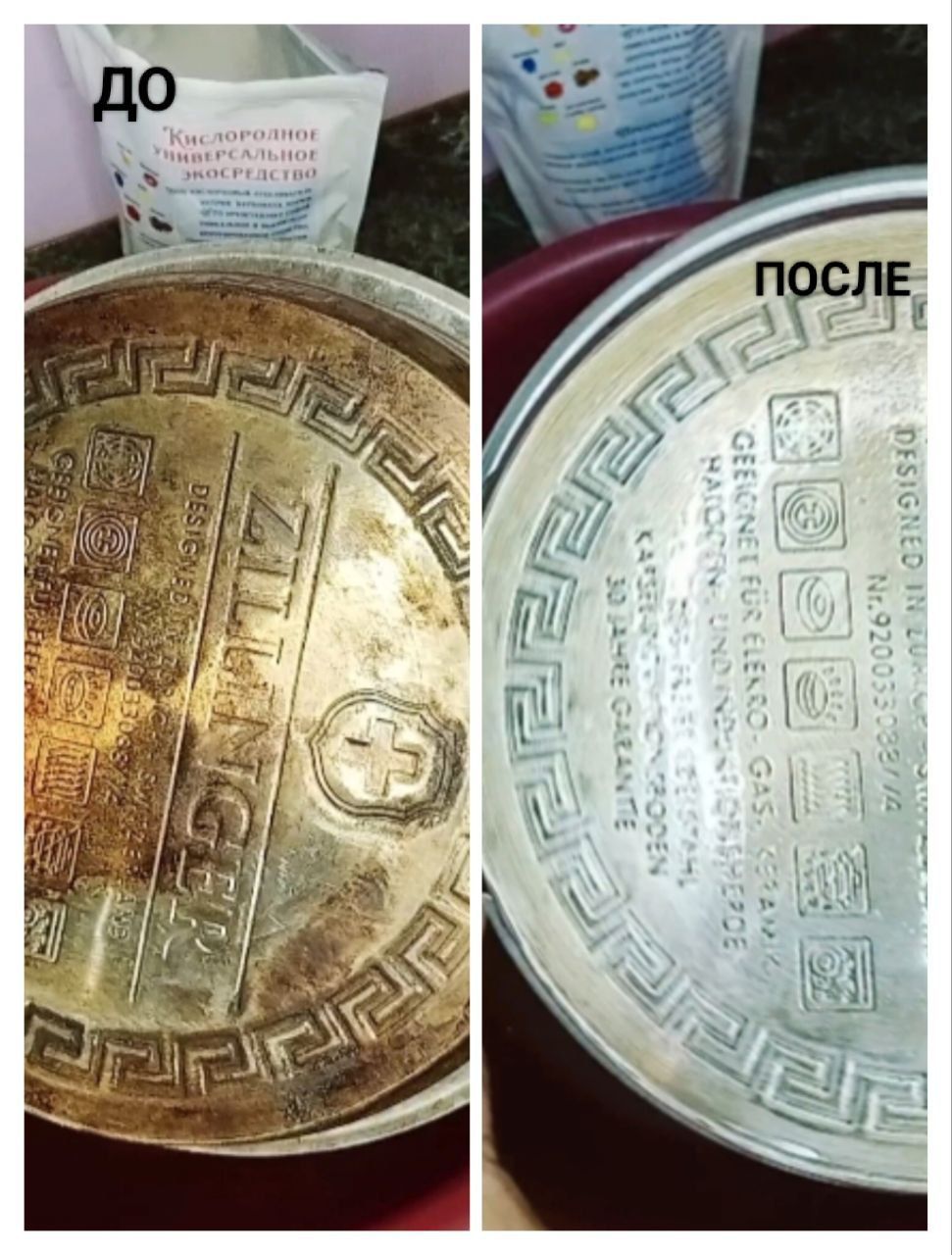 И ваша посуда как новаяНаверняка вы знаете, как трудно избежать пятен и запаха на кухонных полотенцах. Но не отчаивайтесь.Кислородное ЭКОсредство прекрасно справится, легко убирает все пятна с полотенец. Отстирывает въевшиеся пятна.Дезинфицирующее чистящее средство универсальное также подойдет для чистки кухонной утвари, снятия нагара с посуды, удаления старого пищевого налета, чайного и кофейного налета.