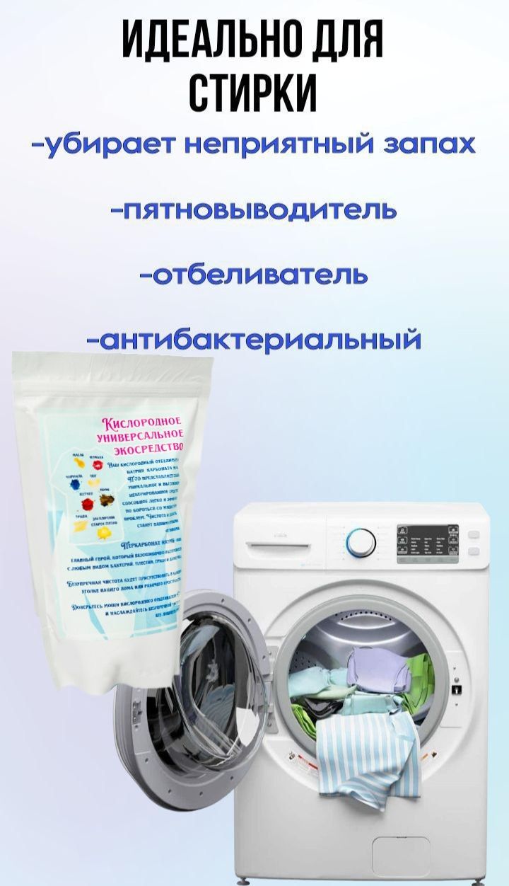 Кислородное универсальное ЭКОсредство - 900 грамм, пятновыводитель для белого и цветного белья, отбеливатель экологичный, универсальный,усилитель стирки,перкарбонат натрия 100%