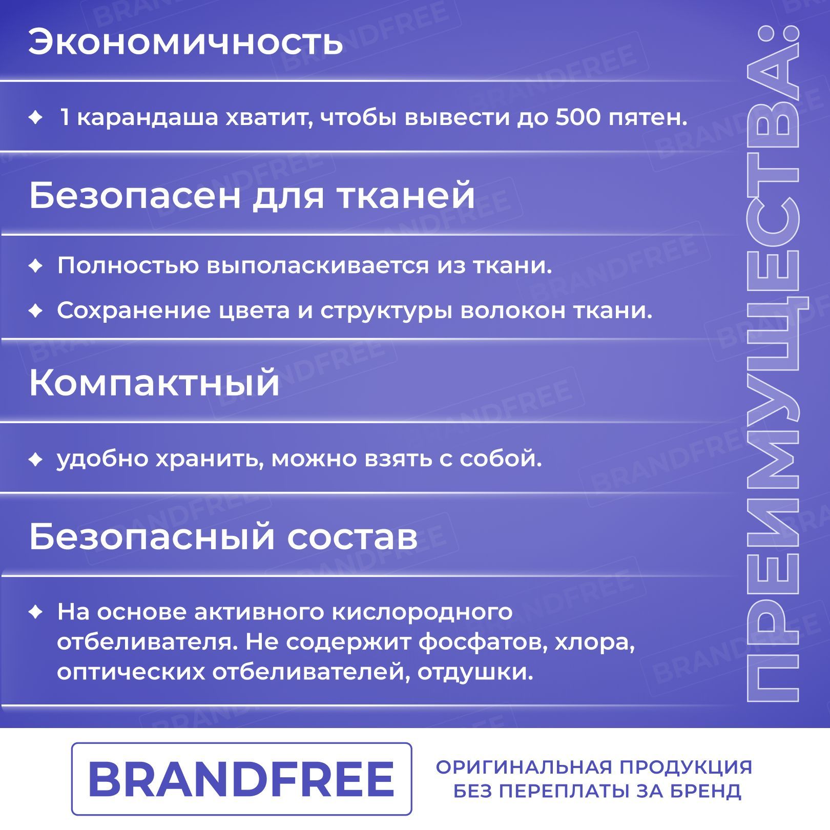 Упаковка; кислородный карандаш-пятновыводитель Brandfree