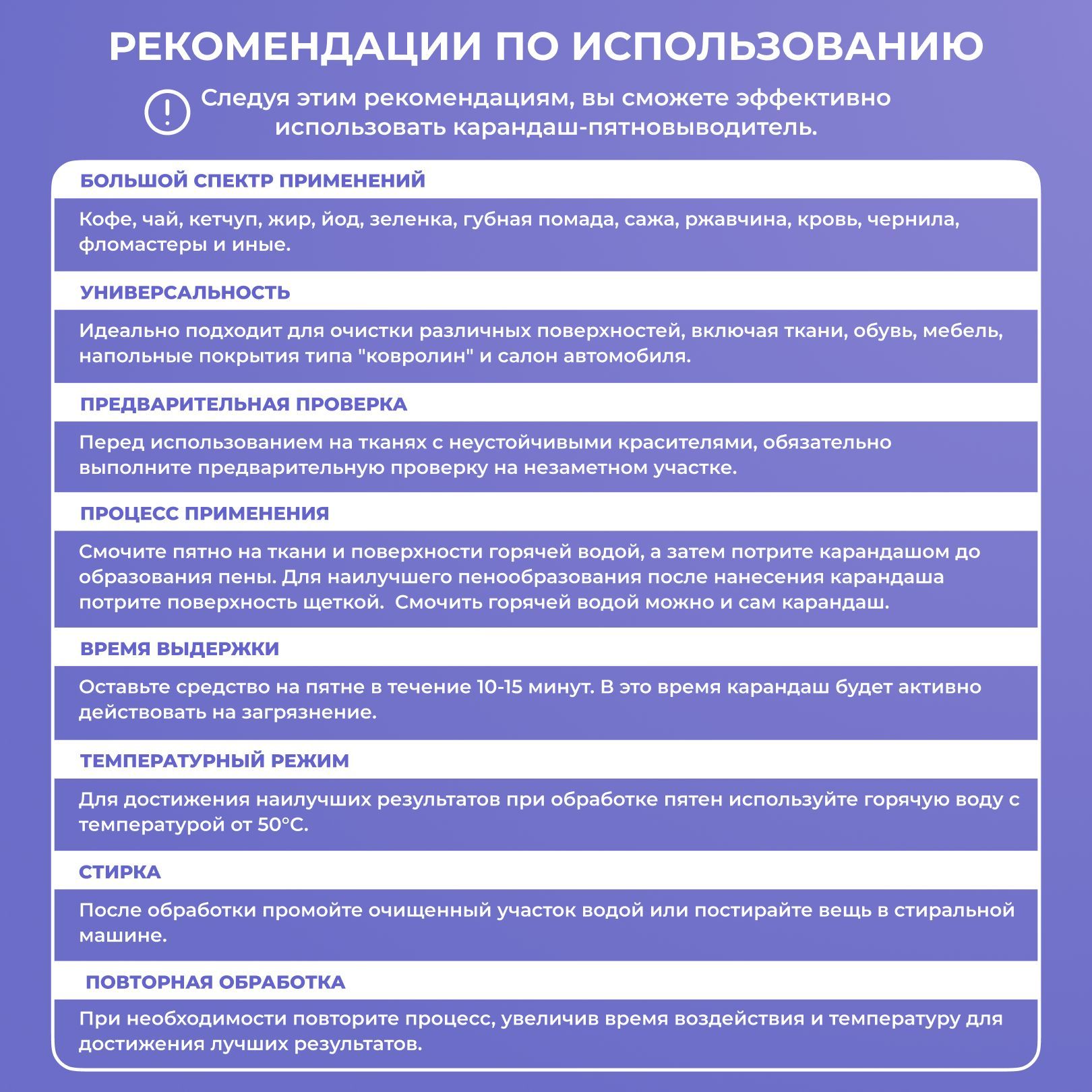 Описание: Кислородный пятновыводитель в карандаше Brandfree - это надежный помощник, который поможет вам легко и эффективно убрать самые устойчивые пятна на различных поверхностях. Среди них: кофе; чай; кетчуп; жир; йод; зеленка; губная помада; сажа; ржавчина; кровь; чернила; шариковые ручки и фломастеры на тканях; обуви; обивке мебели; напольных покрытиях типа "ковролин"; салоне автомобиля и т.д. Это возможно благодаря высокой концентрации активного кислорода, который способствует расщеплению загрязнений. С данным средством можно навсегда забыть о длительных вымачиваниях одежды, которые не приносят желаемого эффекта. Карандаш на основе кислорода не разрушает структуру ткани, сохраняя ее первоначальное качество и внешний вид. Однако, для тканей с неустойчивыми красителями, рекомендуется предварительно проверить пятновыводитель на незаметном участке. Кроме того, он гипоаллергенный и подходит для детей и людей с чувствительной кожей. Чудо-карандаш брендфри в удобной упаковке компактен и экономичен в использовании. Вы можете взять его с собой в поездку и использовать в любой ситуации. Для использования карандаша, достаточно смочить загрязненный участок одежды в горячей воде (50-60°С), нанести пятновыводитель на пятно и потереть до образования пены. Через 10-15 минут обработанный участок нужно промыть водой или постирать вещь с порошком. Для достижения наилучшего результата важно использовать горячую воду. При необходимости можно повторить обработку, увеличив время воздействия карандаша для вещей и температуру. Brandfree – это ваш выбор для безупречной чистоты и сохранения красоты вашей одежды.