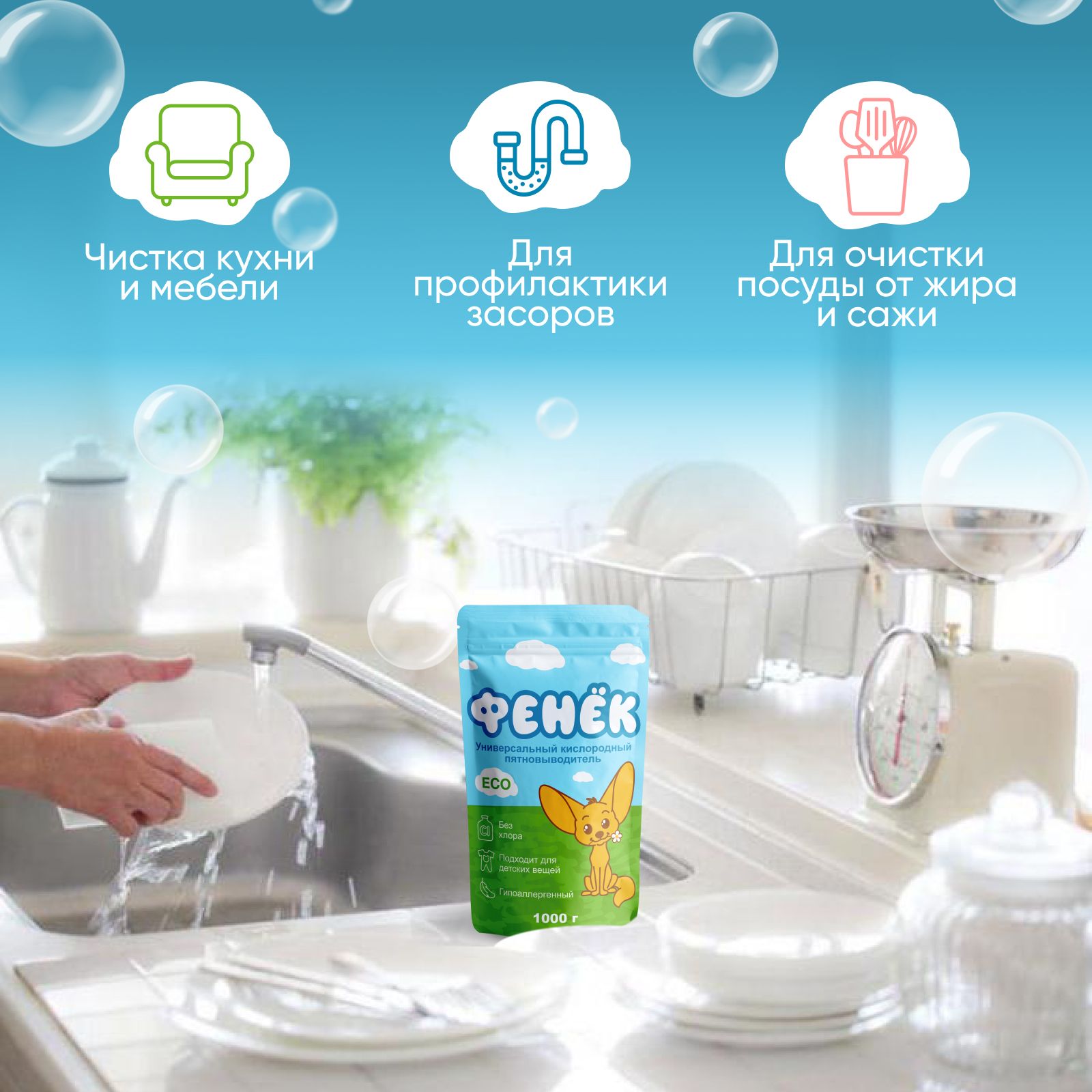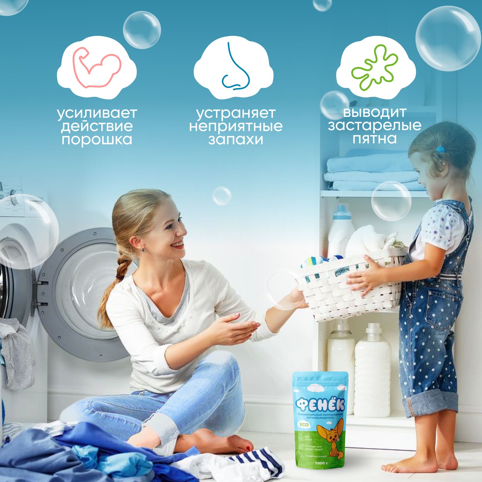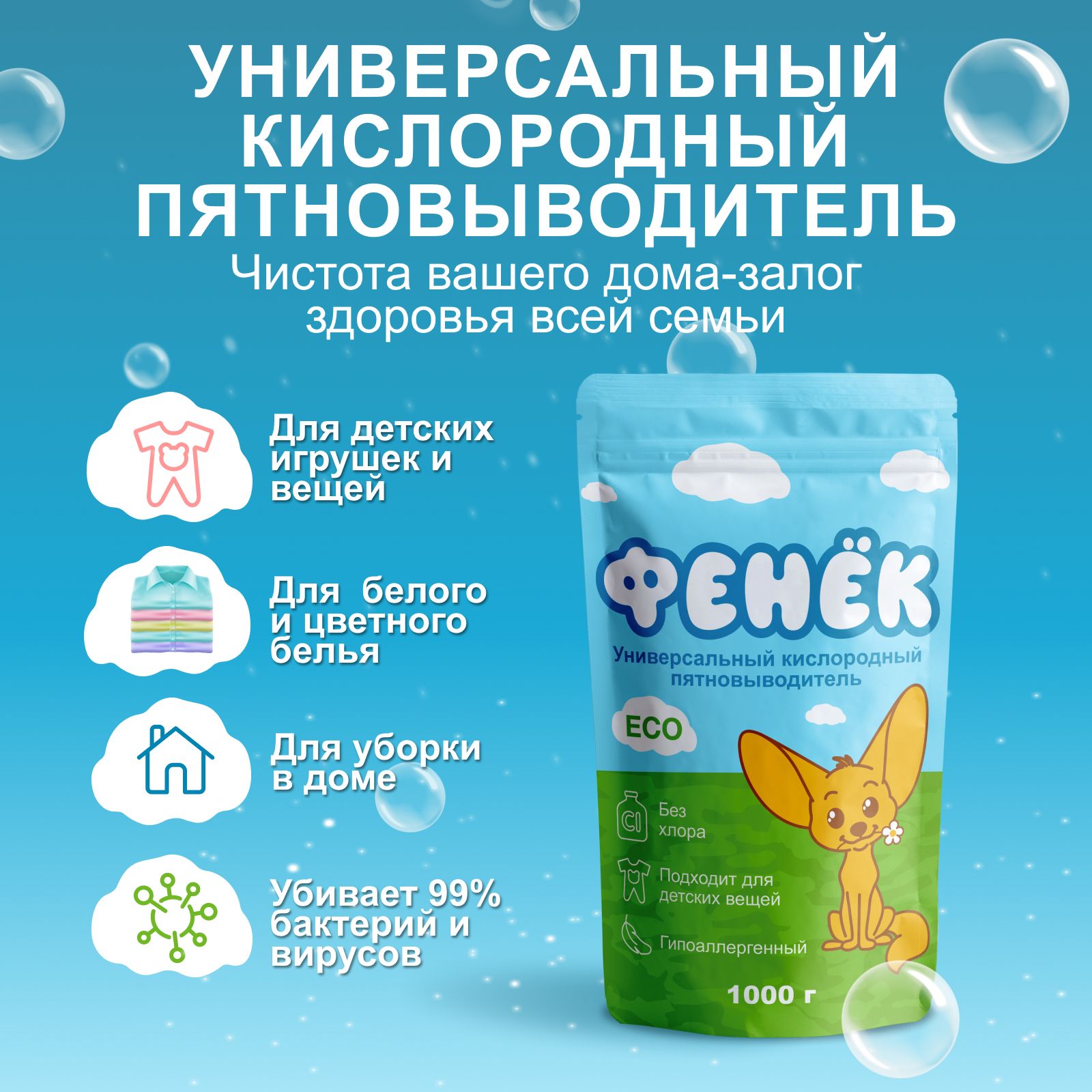 Кислородный очиститель Фенёк 1 кг, пятновыводитель для белого и цветного белья, отбеливатель экологичный универсальный, перкарбонат натрия 100%