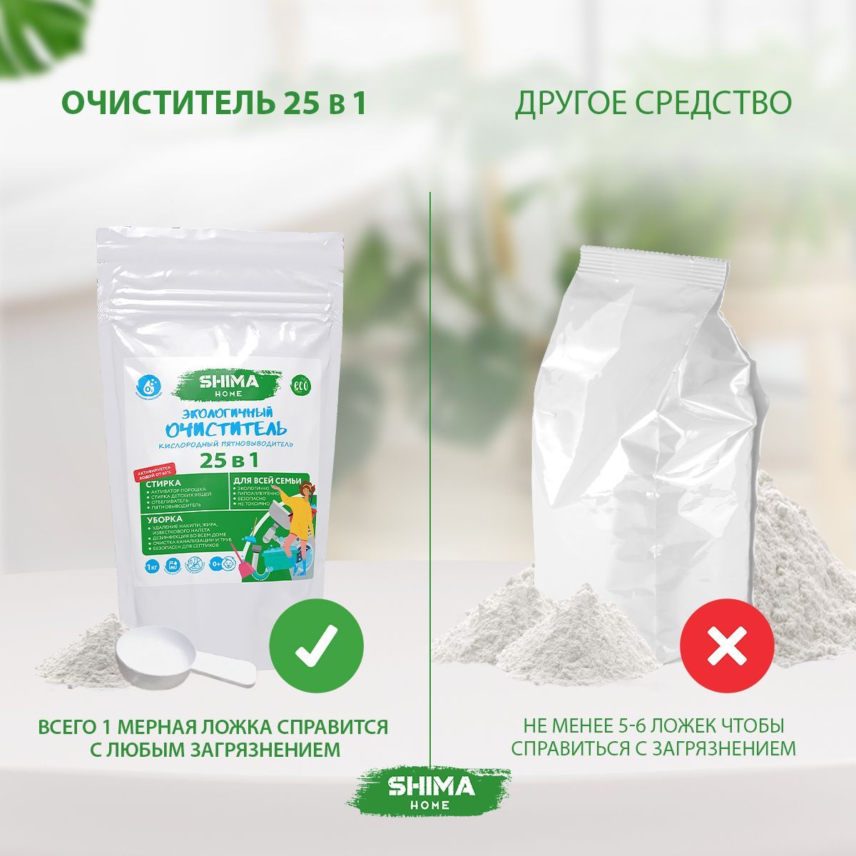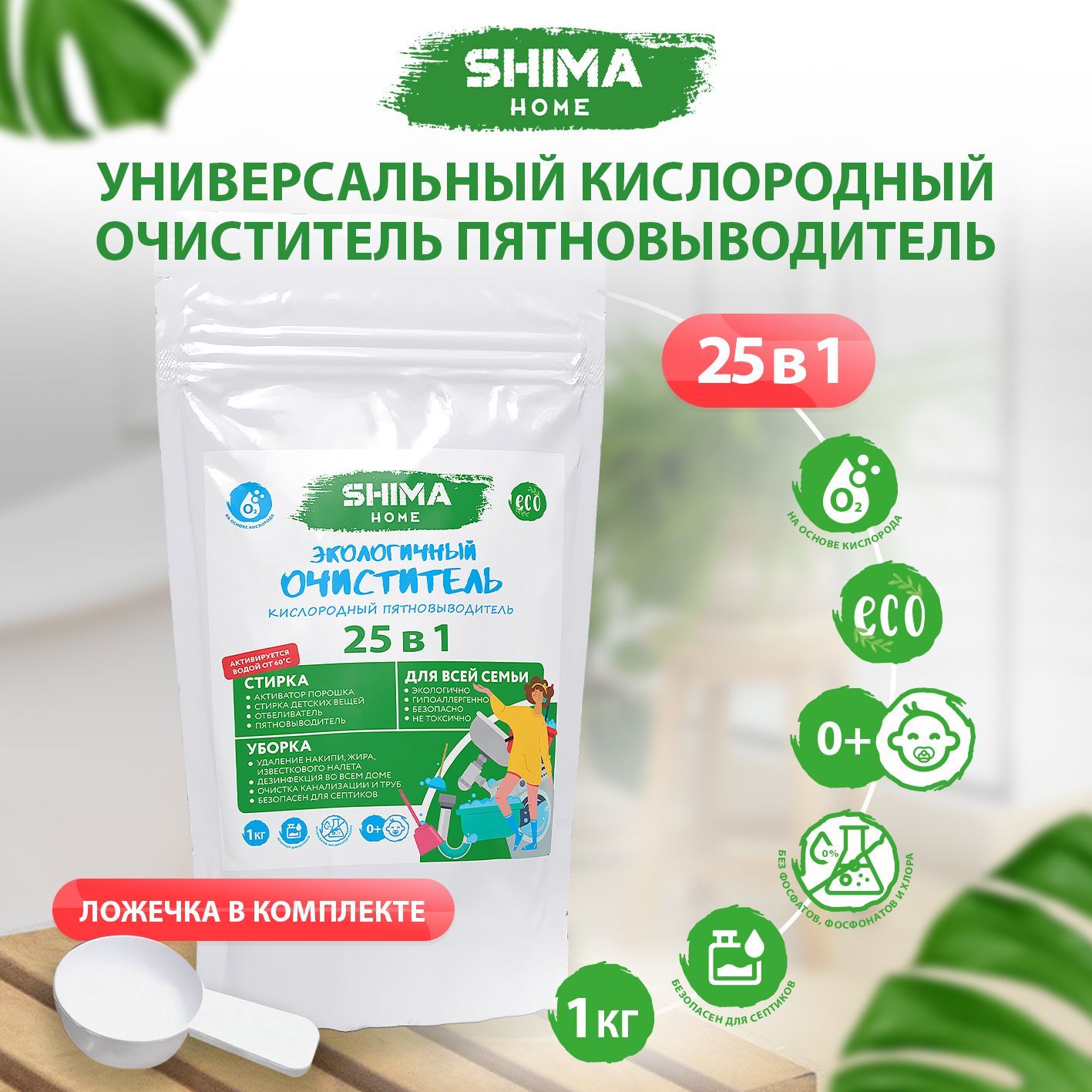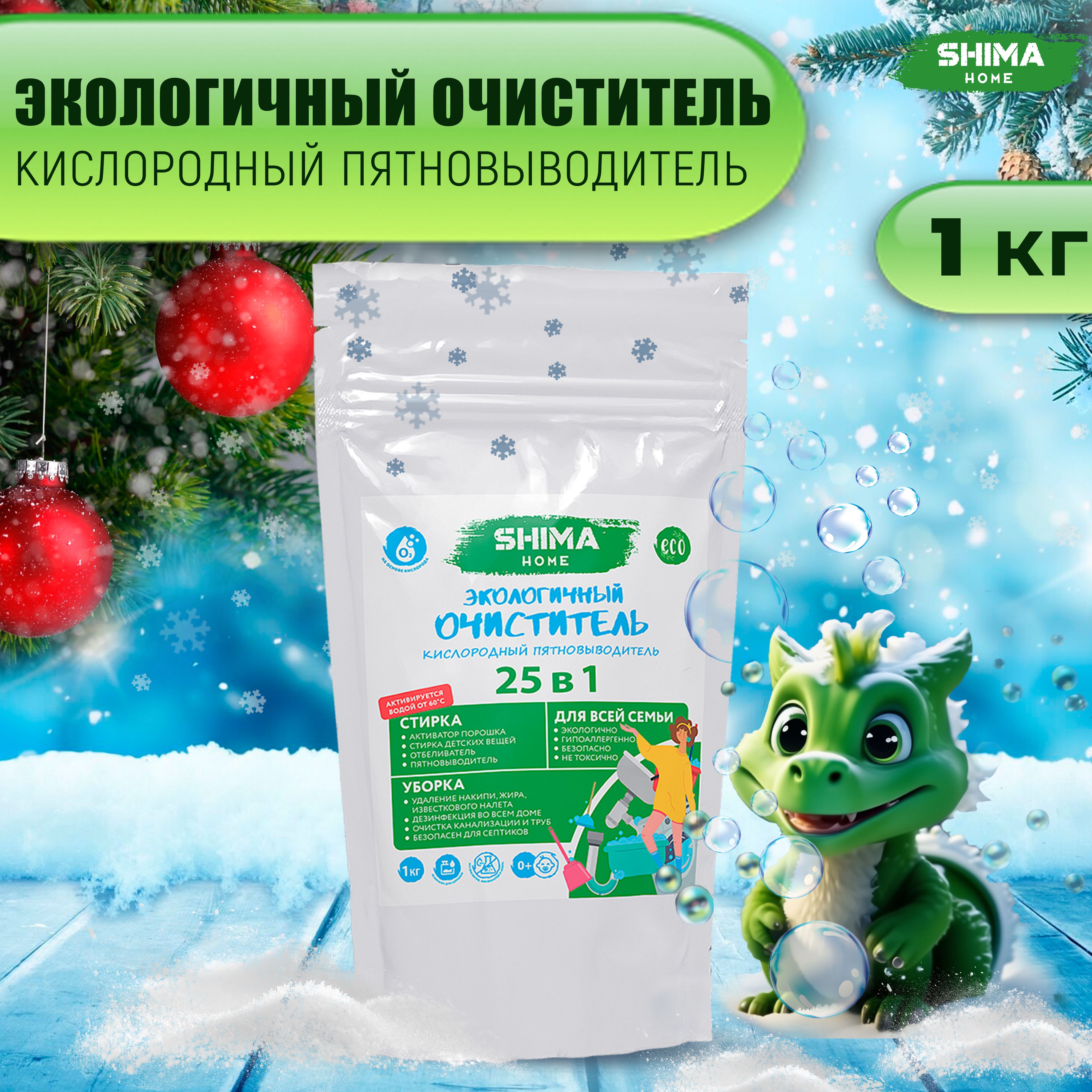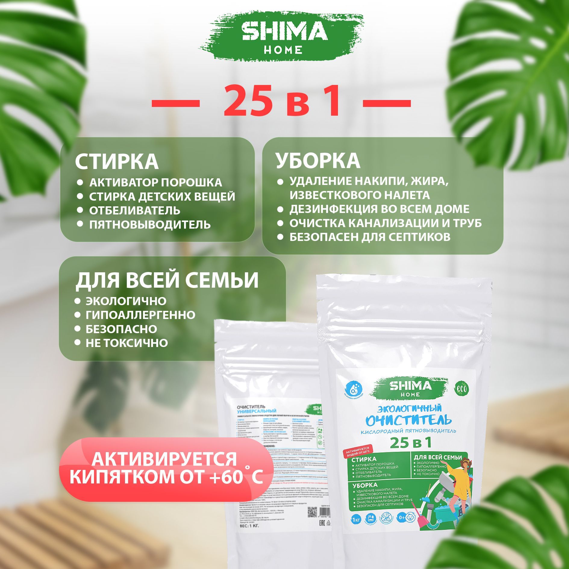 Кислородный очиститель, отбеливатель, пятновыводитель 1000 г ЭКО, универсальный порошок 25в1 для стирки и уборки SHIMA HOME