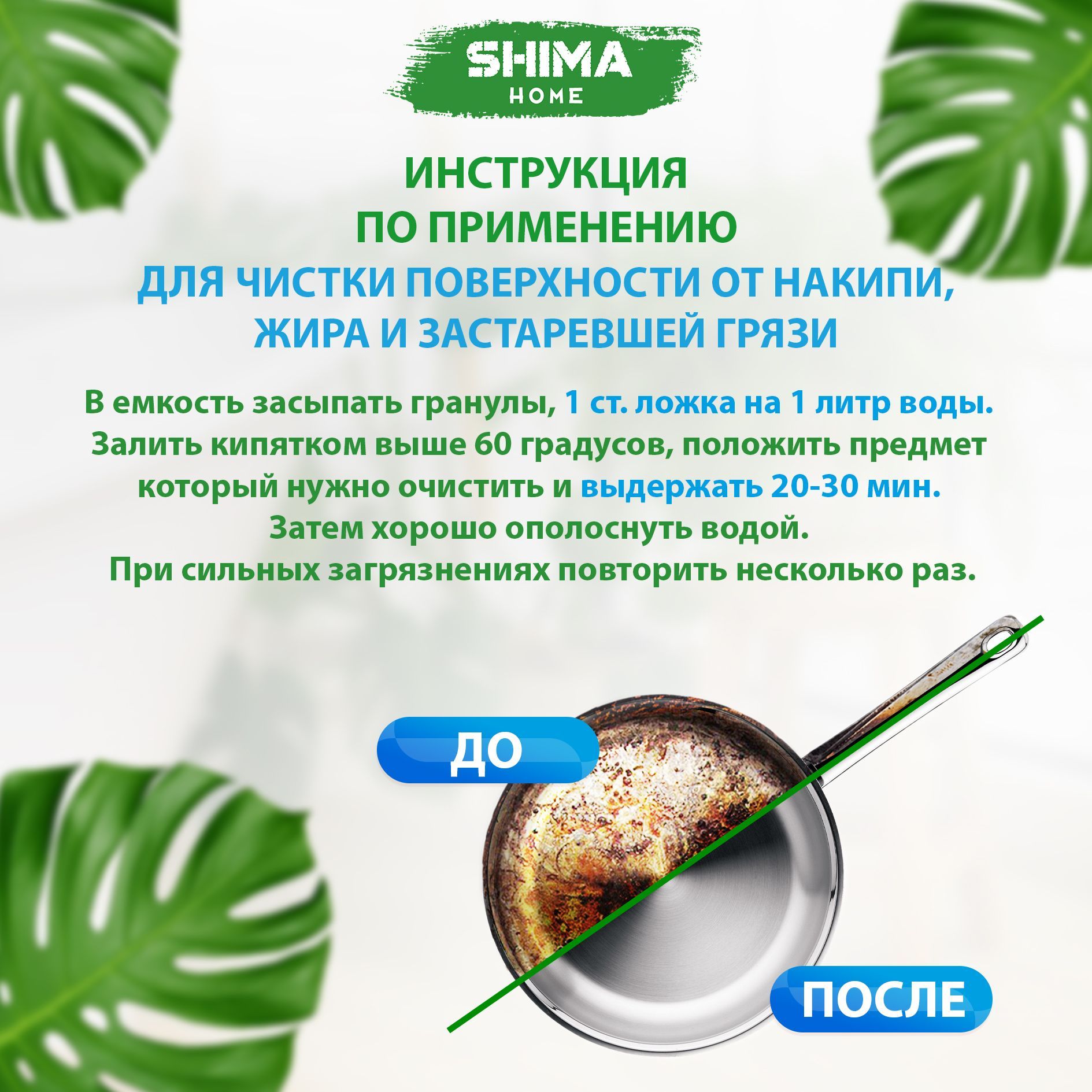Описание: Экологичный очиститель кислородный пятновыводитель от SHIMA HOME - мощный кислородный пятновыводитель, а также отличная активная добавка - усилитель действия любого синтетического моющего средства (стиральный порошок, жидкое средство для стирки). Средство не содержит хлора и фосфатов, используется как пятновыводитель для цветного белья, а также для стирки черного белья. Эффективно выводит сложные пятна, застарелые и въевшиеся загрязнения органического происхождения: жирные пятна, следы грязи, пятна от прикорма, от вина, от травы, пятна крови, желтые пятна пота и многие другие. Наш очиститель 25 в 1 также применяется как отбеливатель для белого белья, избавляет белые ткани от желтизны и серости. Пятновыводитель - на 100% экологичная бытовая химия: в процессе реакции эко порошок распадается на соду, воду и активный кислород. Наш гипоаллергенный пятновыводитель подходит для вещей аллергиков, а так же предназначен не только для стирки белья, но и для чистки кухонной утвари от въевшегося жира, снятия нагара с посуды, удаления старого пищевого налета, чайного, кофейного и прочих органических налетов. Порошок можно использовать как средство для чистки ковров ( палас, ковролин и пр.), для чистки мягкой мебели ( обивки дивана, кресел, стульев, мебельный чехол ). Средством можно почистить матрас от пятен, разводов и запахов. Пятновыводитель позволяет значительно сэкономить на химчистке и клининге. Наш Эко очиститель кислородный незаменим для дома и кухни: это эффективное средство для удаления плесени, для чистки межплиточных швов. Средство можно использовать как очиститель накипи для чайников. Кислородный очиститель подойдет для использования вместо таблеток для посудомоечных машин. Подходит для чистки ювелирных изделий (золото и серебро, без камней) от налета и от потемнения. Порошок очиститель - дезинфицирующее чистящее средство для удаления сильных запахов, для уборки и дезинфекции. Важно! Для активации средства необходима вода температурой не меньше 60 градусов. Внимание! Порошок нельзя применять для шерсти и шелка, натуральной кожи (в т.ч. замши и нубука), пуха и пера, мембранных тканей, изделий из алюминия, меди, дерева. ЗАПРЕЩЕНО: смешивать со средствами, содержащими хлор (например, белизна). Мерная ложка в комплекте.