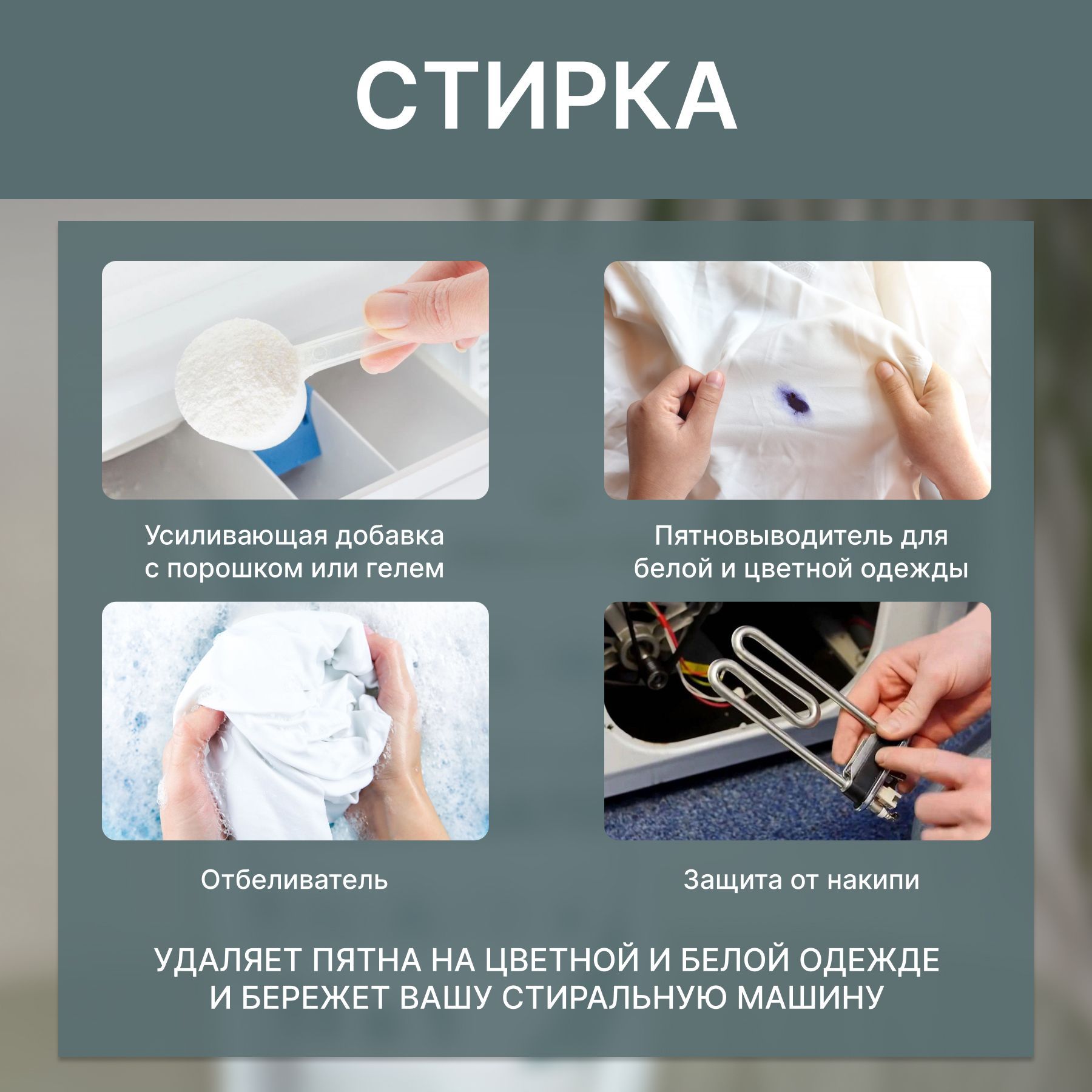 Особенности применения: Отбеливание, Антибактериальный эффект, Гипоаллергенность, Экосредство