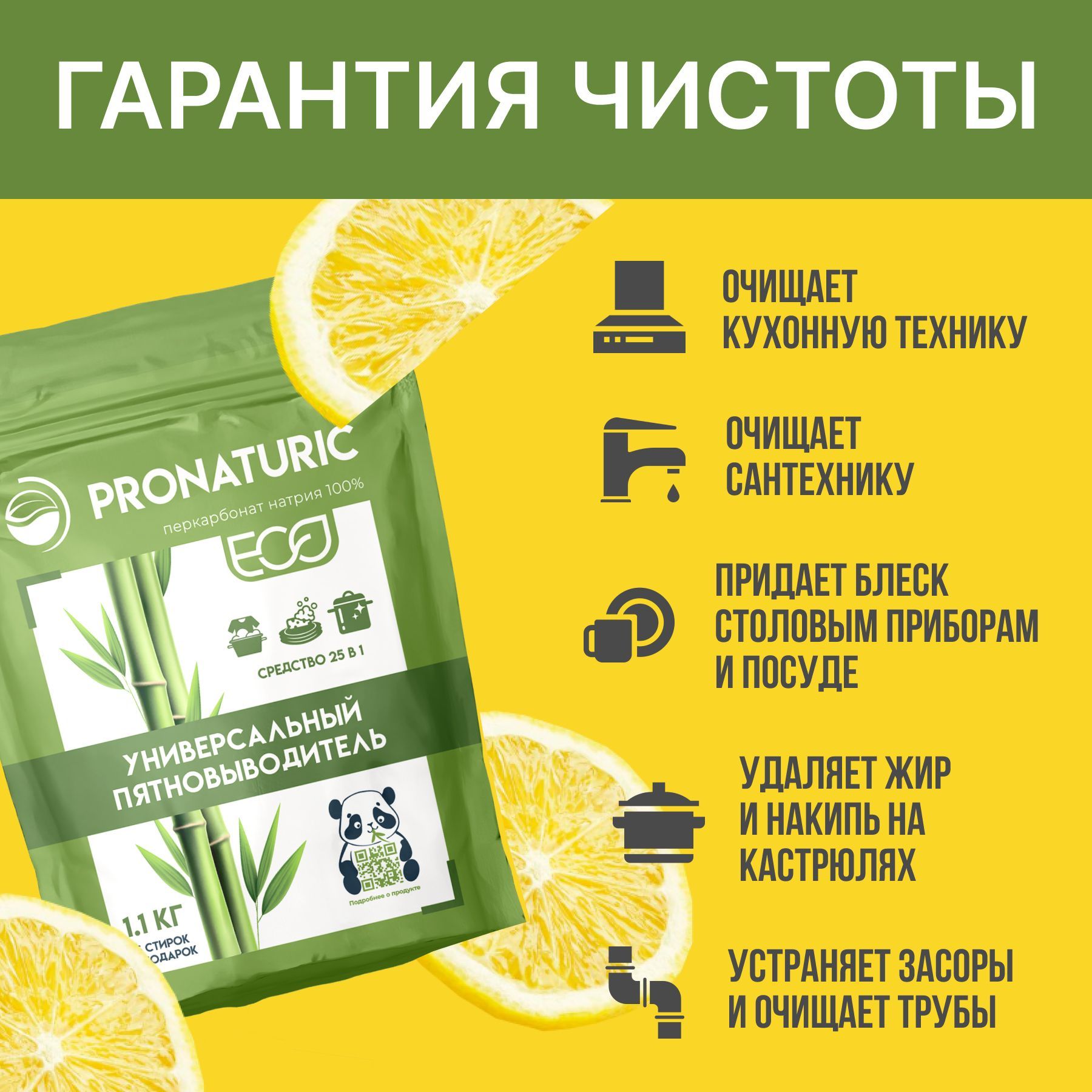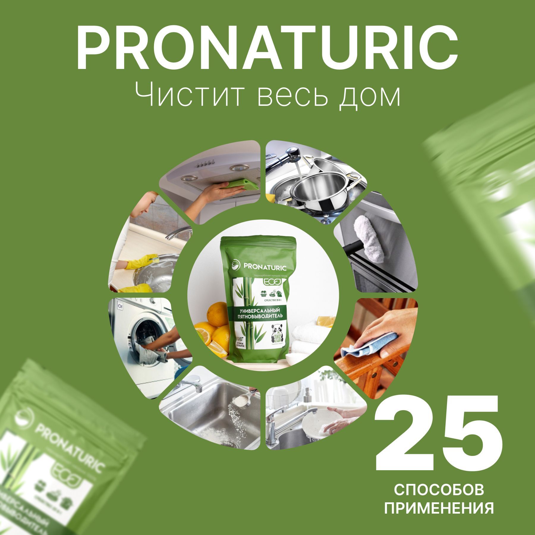 Описание: Pronaturic- Чистит весь домСостав - ТОЛЬКО 100 % перкарбонат натрия марки П -70 - это наивысший стандарт и кислородный отбеливатель в абсолютно чистом виде, БЕЗ примесей и удешевляющих добавок. Просто добавь кипятка! - и перед вами возникнет универсальный кислородный пятновыводитель очиститель отбеливатель Pronaturic.СтиркаКислородный отбеливатель максимально просто и эффективно удаляет загрязнения с различных поверхностей и тканей: кафеля, стекла, камня, пластика, резины, эмалированных поверхностей, нержавеющей стали, фаянса, стеклокерамики, обивки мягкой мебели и ковров и даже детских игрушек, усиливает действие стирального порошка, не имеет едкого запаха и цвета.КухняДля эффективного очищения следует использовать именно кипяток. Стирка, уборка и дезинфекция станут проще, быстрее и экономичнее вместе в с Pronaturiс ! Вы легко и просто найдете более 25 способов применения этого чудо средства очистки. Самый простой - 1-2 мерные ложки Pronaturiс залить чайником горячей воды и опустить в этот раствор, например, столовые приборы, сито от заварки, кухонные полотенца и прочее. ВаннаяОценить результат и очень приятно ему удивиться вы сможете уже через 10 мин! ВНИМАНИЕ: НЕ применять для изделий из шерсти, шелка, кожи, нубука и замши, мембранных тканей, изделий с элементами меди и алюминия !
