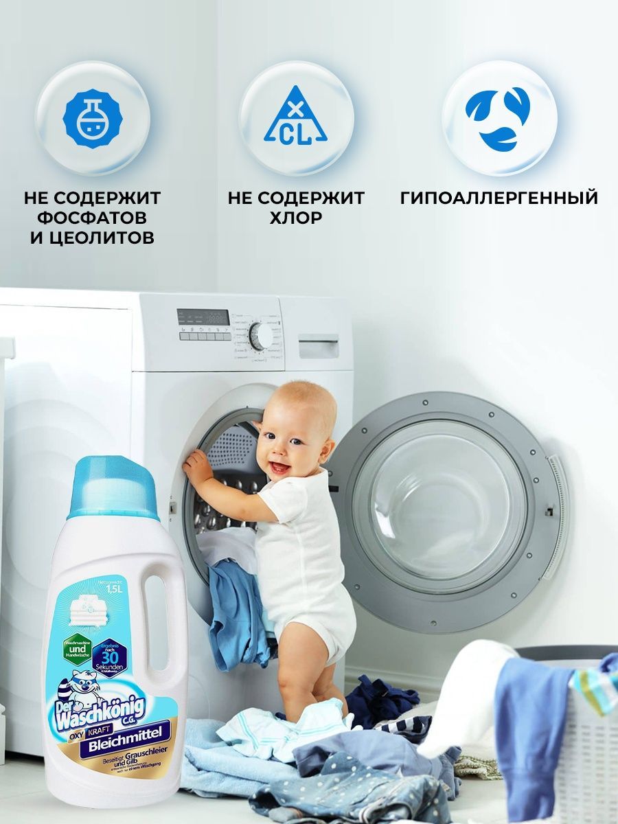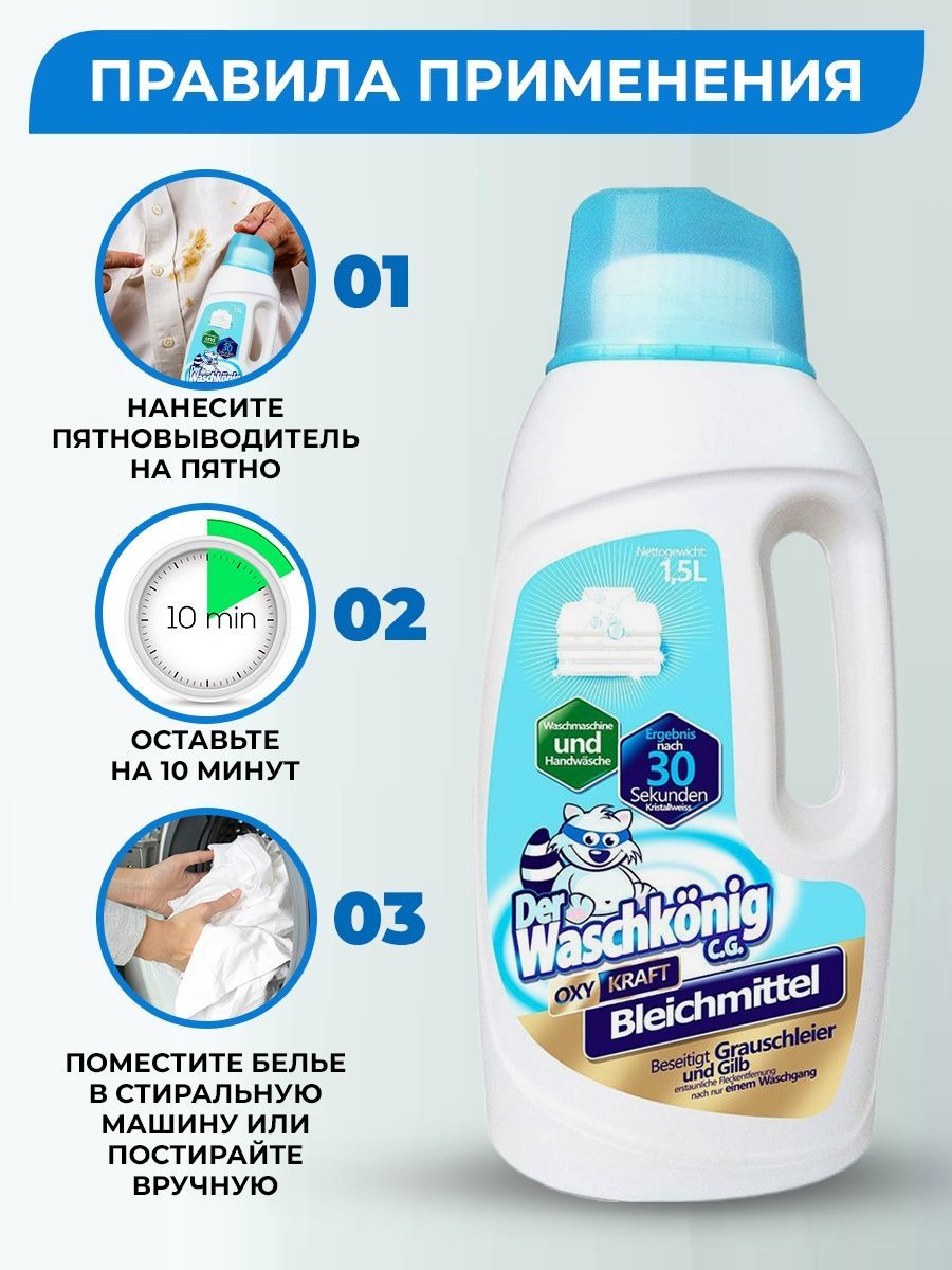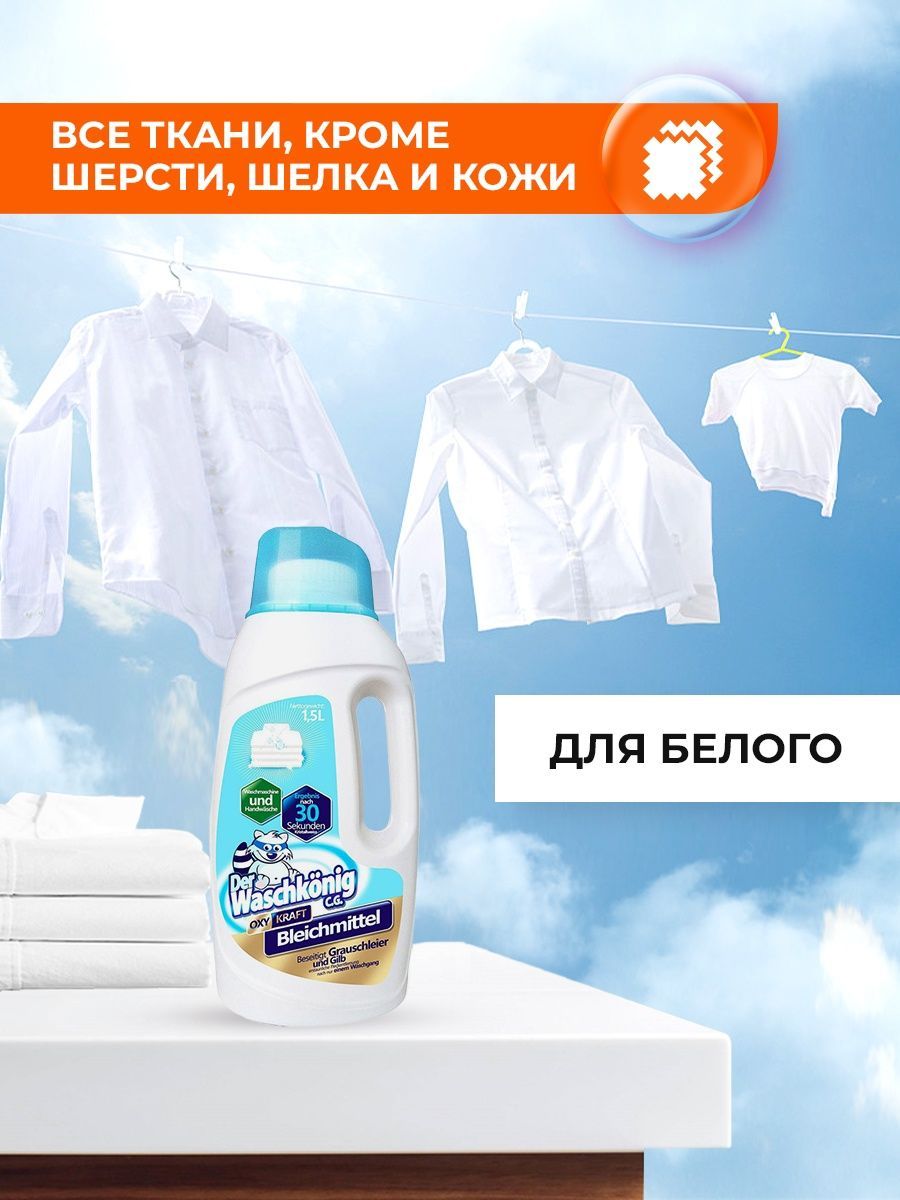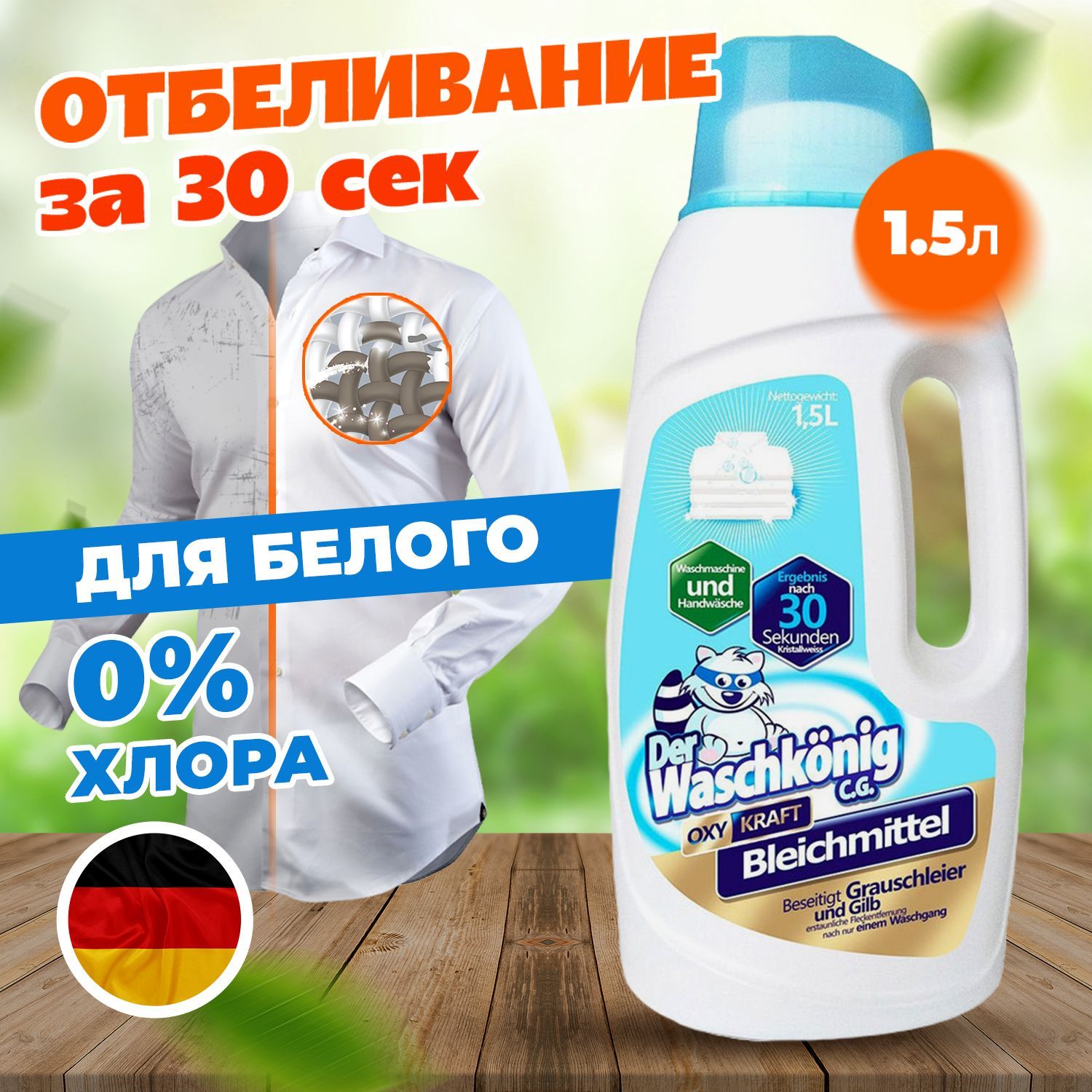 Кислородный отбеливатель для белого белья 1.5 л, CLOVIN (Германия) Der Waschkonig C.G Blechmittel Oxy Kraft жидкий ЭКО гипоаллергенный пятновыводитель очиститель без хлора, фосфатов и цеолитов