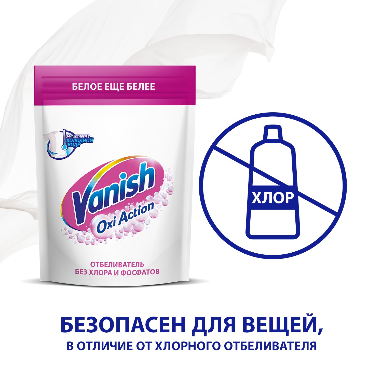 Описание: Кислородный отбеливатель и пятновыводитель для белых тканей "Vanish Oxi Action" Отбеливатель и пятновыводитель Vanish Oxi Action обеспечивает превосходное удаление пятен, делая белые вещи еще белее! Даже в холодной воде (30°С)