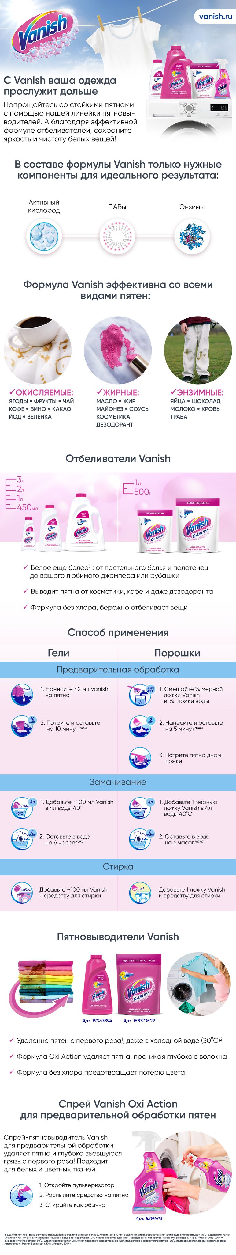Vanish - эксперт в области удаления пятен, отбеливания, ухода за одеждой, вдохните новую жизнь в одежду. Попрощайтесь со стойкими и нежелательными пятнами с помощью нашей линейки пятновыводителей.