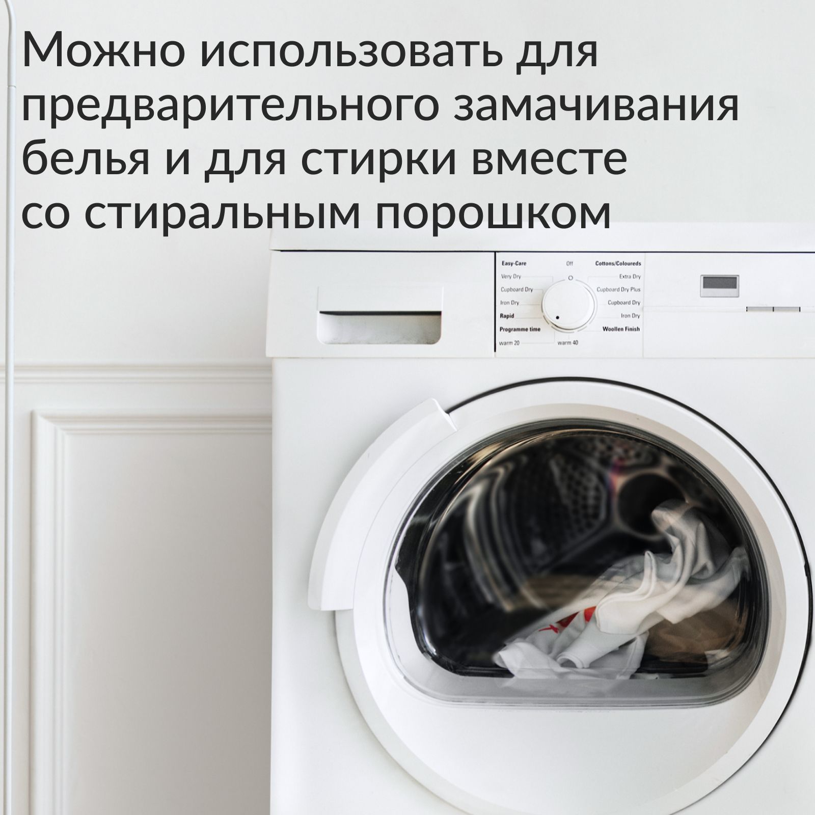 Особенности применения: Антибактериальный эффект, Гипоаллергенность, Отбеливание, Эффективен в холодной воде