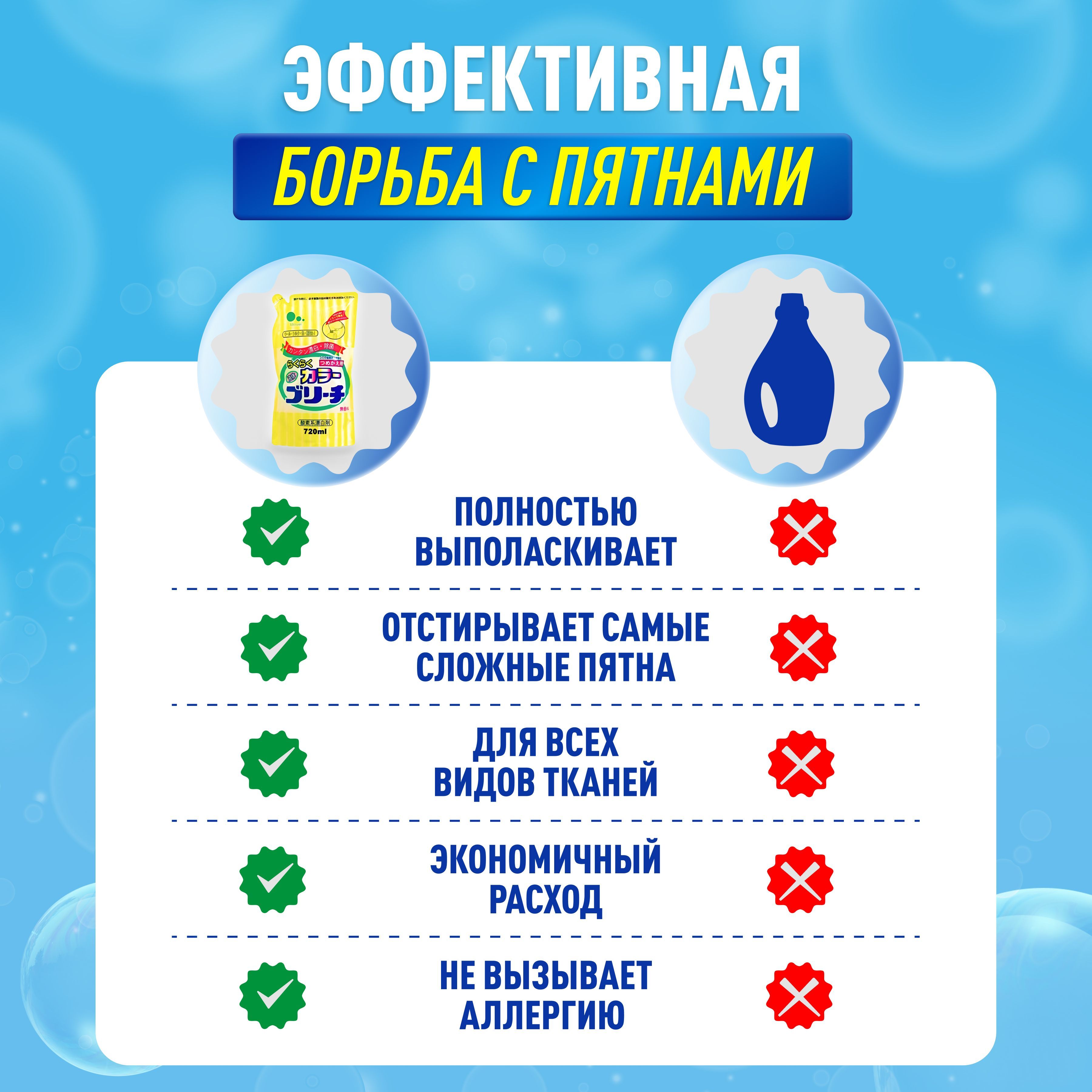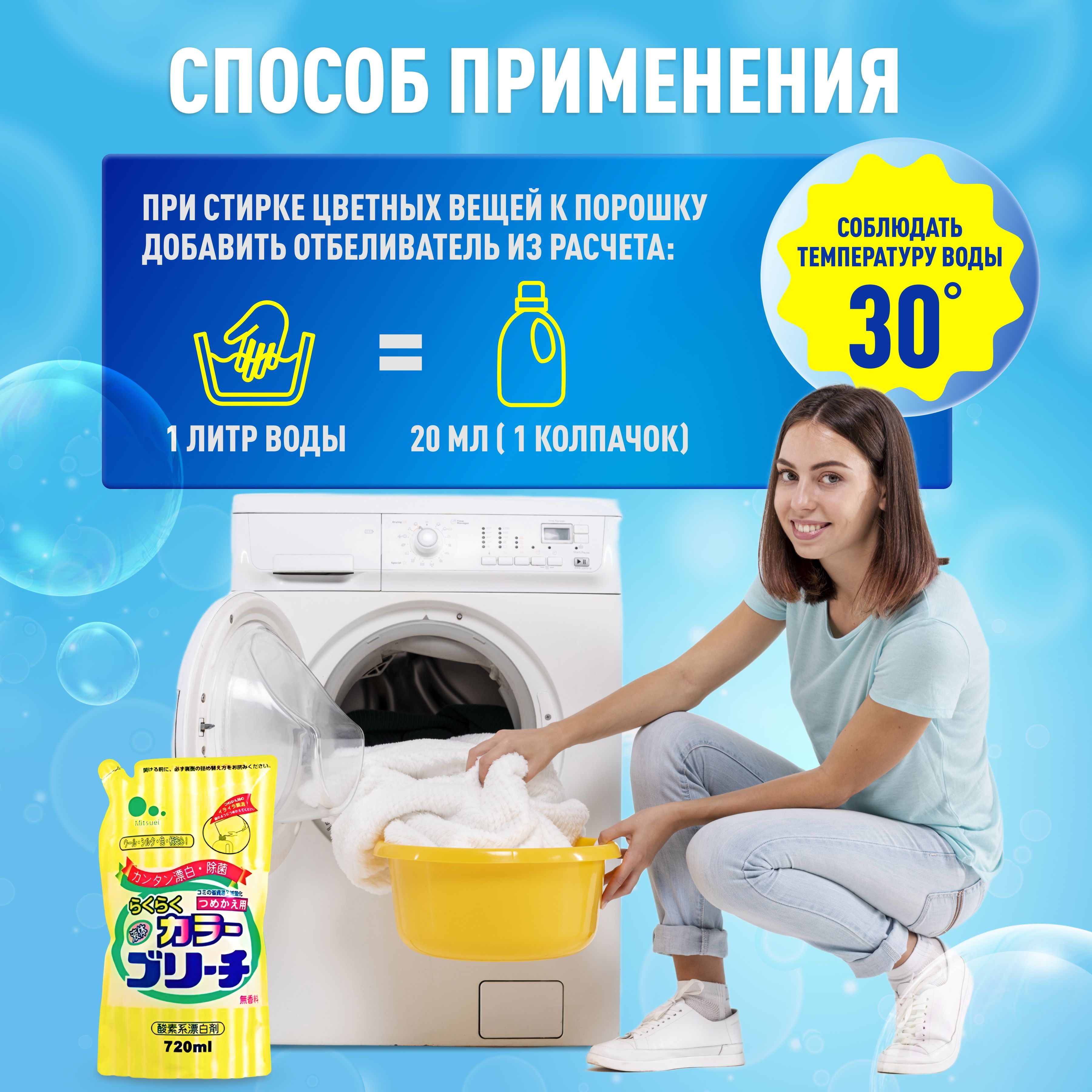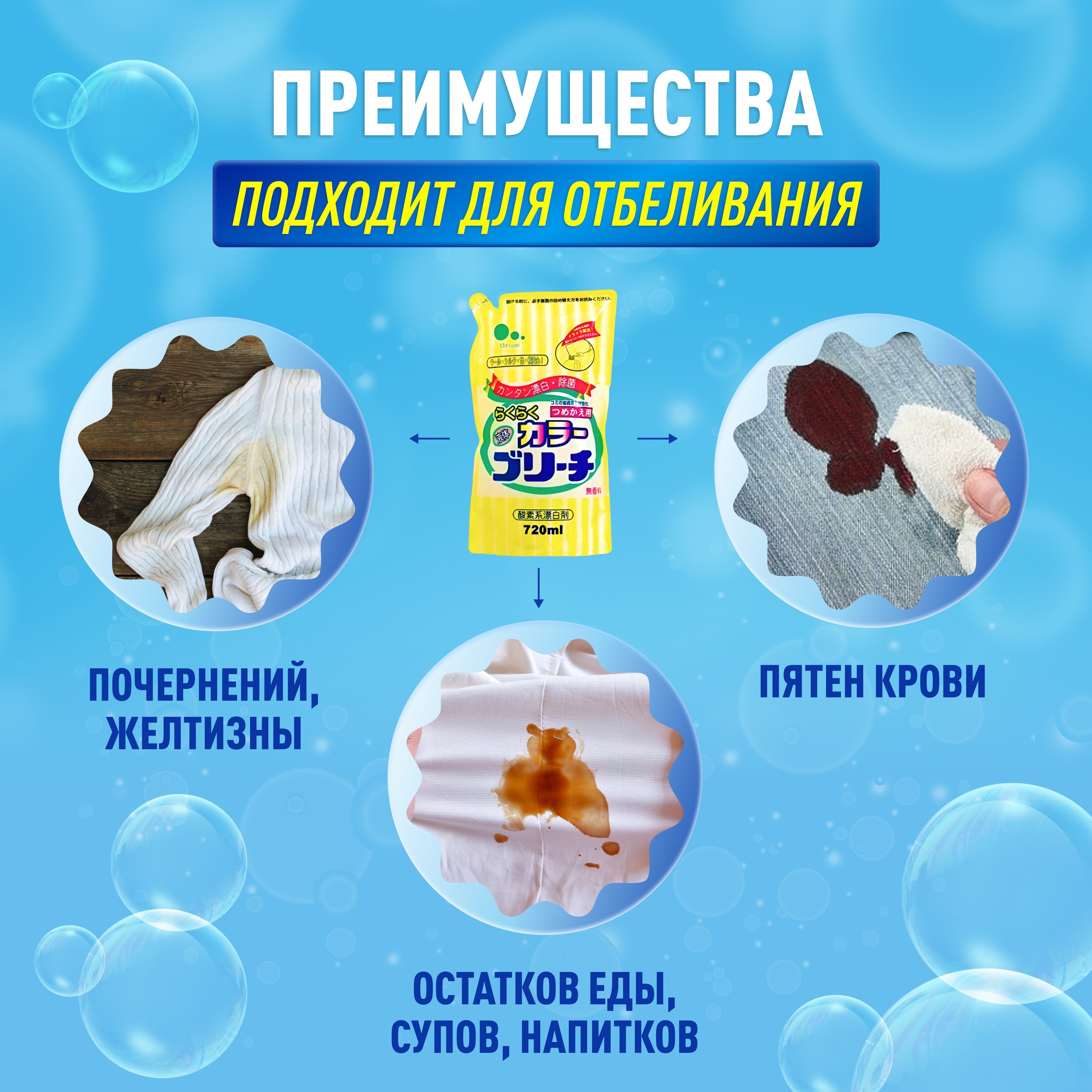 Кислородный отбеливатель Mitsuei Япония для цветного и деликатного для белья, 720 мл, в мягкой упаковке, Жидкий пятновыводитель для стирки вещей без хлора