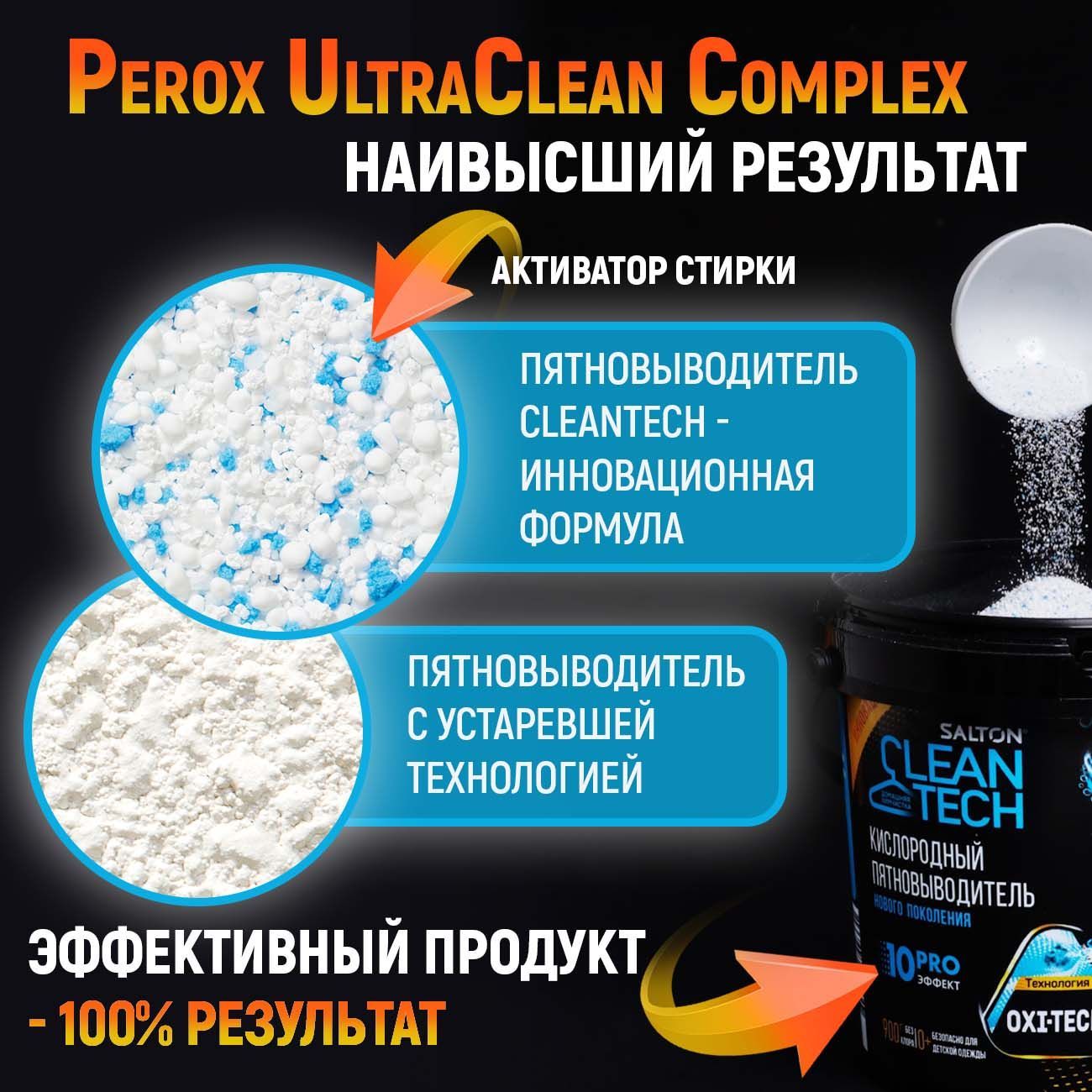 Инновационный Perox UltraClean Complex эффективно и безопасно удаляет пятна уже при температуре 40-60 градусов. Уникальная разработка для выведения сложных пятен при стандартной температуре стирки. Без кипятка, без агрессивной химии, без вреда для вашей одежды.