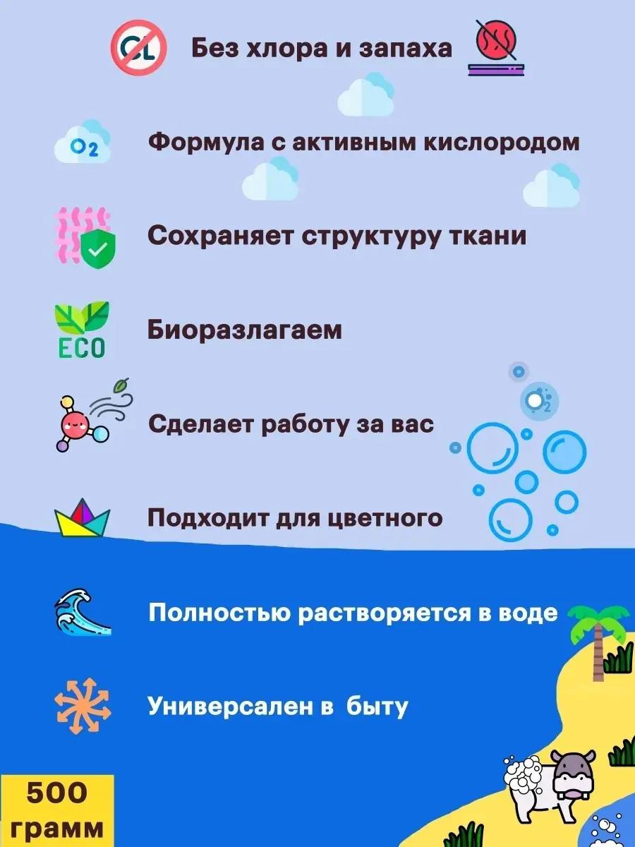 Кислородный отбеливатель / Пятновыводитель детский / Отбеливатель для белья / Перкарбонат натрия