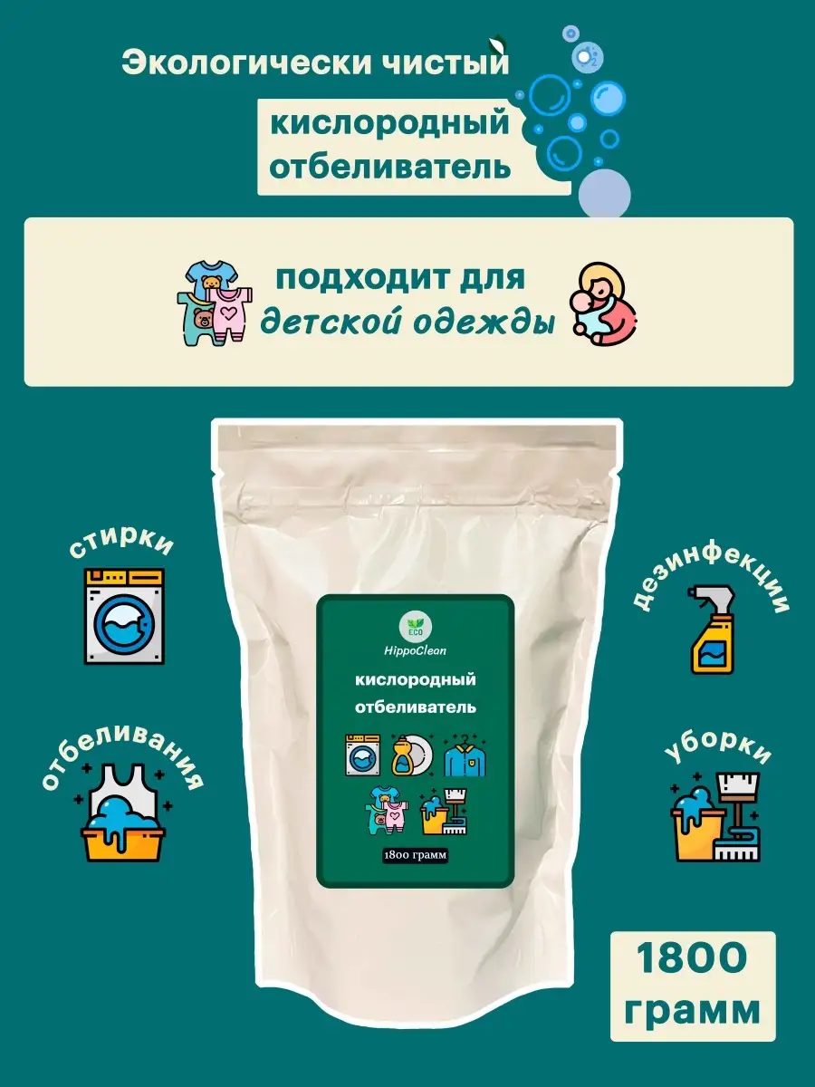 Описание: Кислородный отбеливатель для белья HippoClean будет отличной отбеливающей добавкой для стирки. Экологически чистый пятновыводитель можно использовать для решения различных задач по уборке как дома, так и за его пределами. Пятновыводитель для белья предназначен для удаления органических загрязнений и пятен (грязь, чай, вино и др.) Кислородный отбеливатель нейтрализует неприятные запахи (мусорные баки и т.д.) Детский порошок безопасен для вещей и игрушек. Детский пятновыводитель гипоаллергенен, не содержит хлор. Универсален и смело несёт статус: всё для дома. Кухня и дом будут в чистоте. Подходит как отбеливатель для белого белья, так и как пятновыводитель для цветного белья. Используется в стиральной машине как отбеливающая добавка. Чудо порошок это гранулы для стирки, вот и весь секрет. Состав: 100% перкарбонат натрия. Можно использовать как: средство для чистки ковров, средство для чистки мягкой мебели, отбеливатель для белья, порошок для детского белья, бытовая химия.
