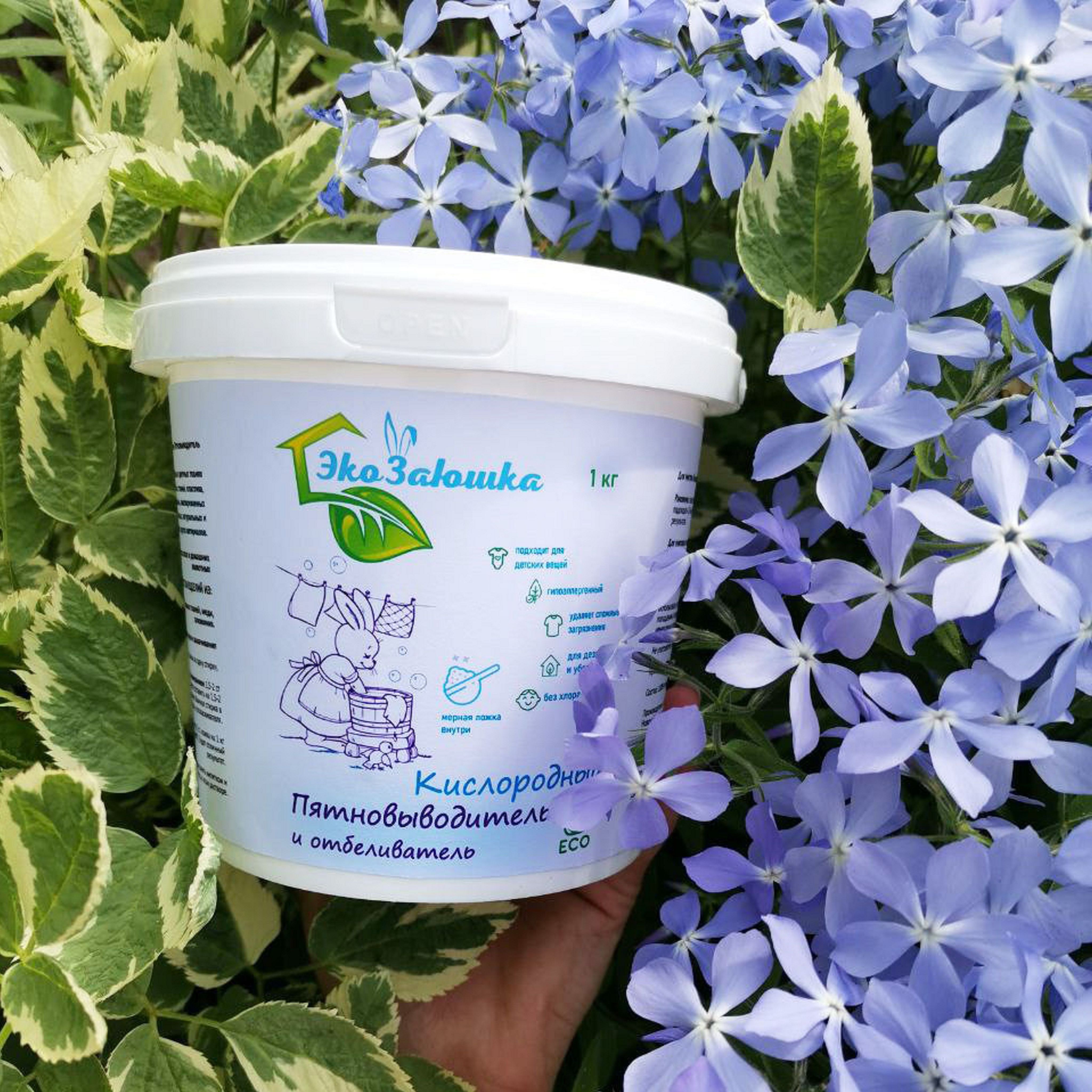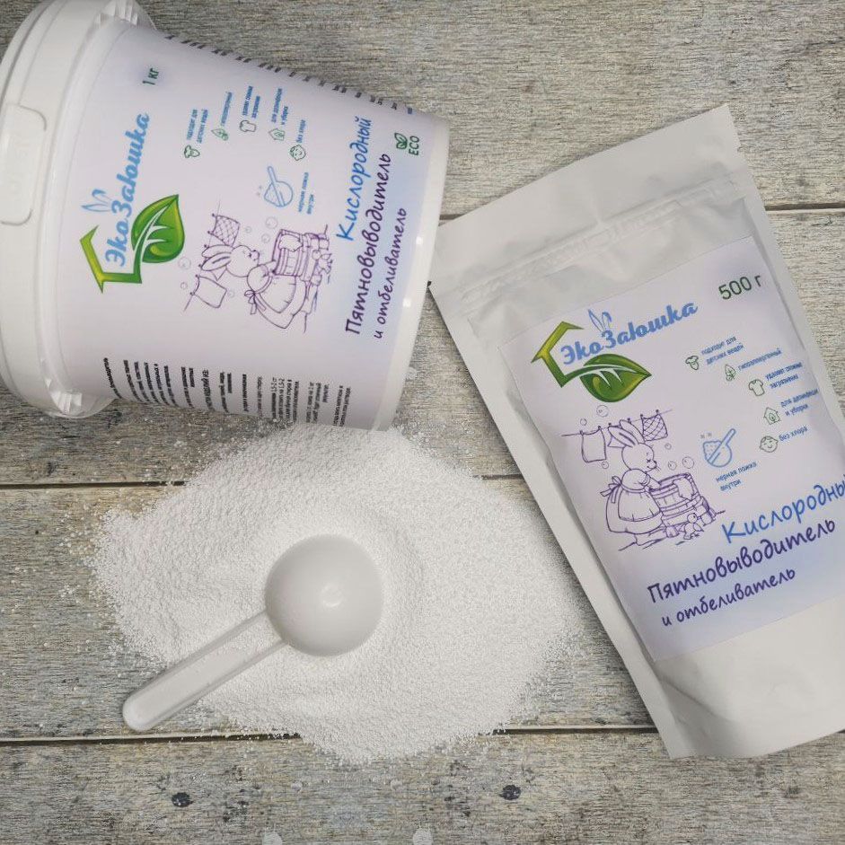 Кислородный Отбеливатель ,Пятновыводитель для белья , Универсальный , Кислородный очиститель ЭкоЗаюшка 1000гр,