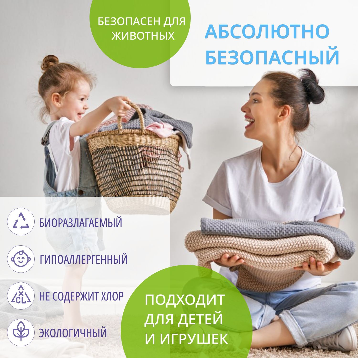 Особенности применения: Антибактериальный эффект, Гипоаллергенность, Отбеливание, Экосредство, Концентрат