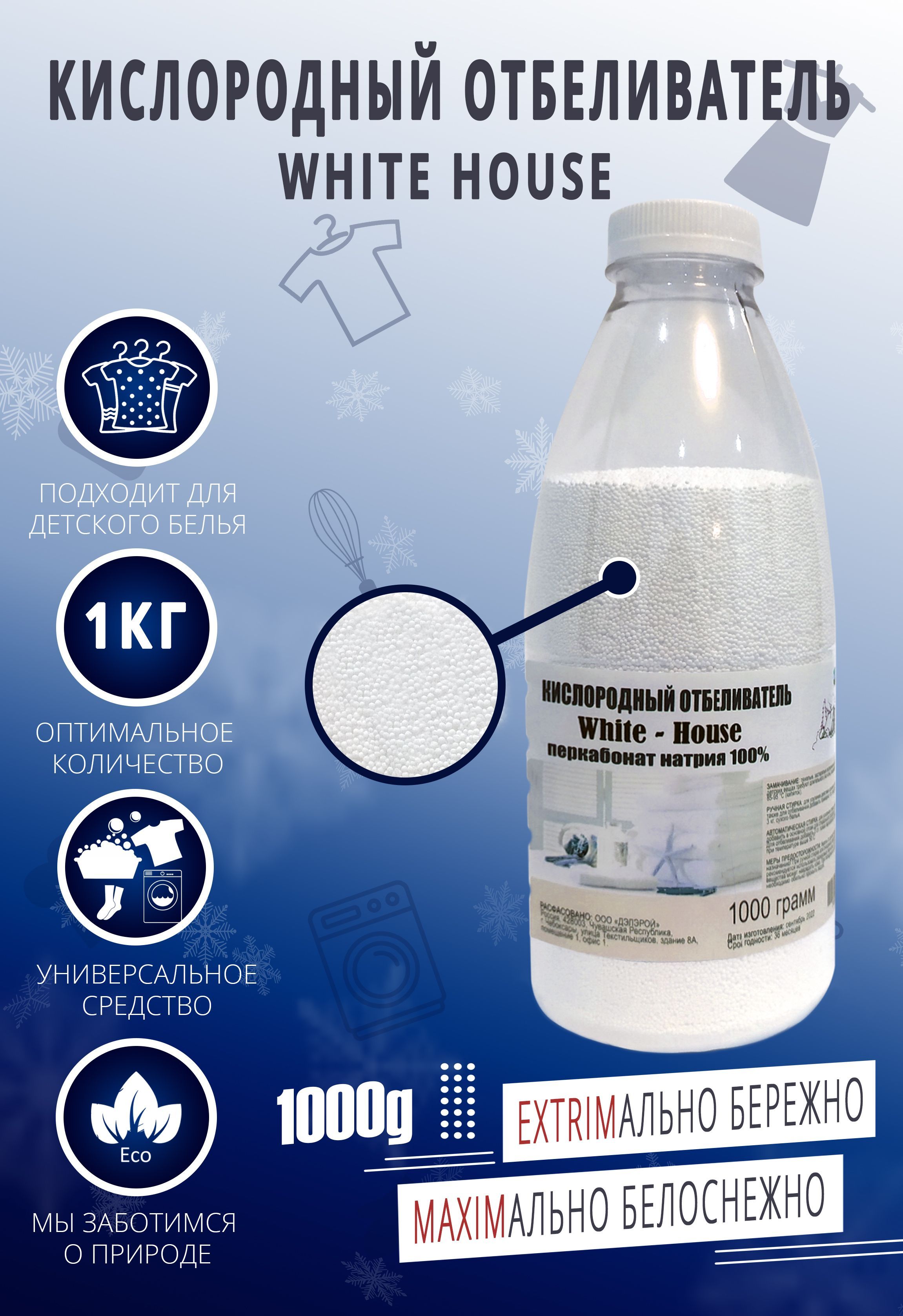 Кислородный отбеливатель Пятновыводитель Перкарбонат натрия 100% WHITE-HOUSE