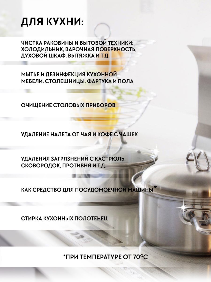 Особенности применения: Отбеливание, Антибактериальный эффект, Гипоаллергенность, Экосредство, Концентрат