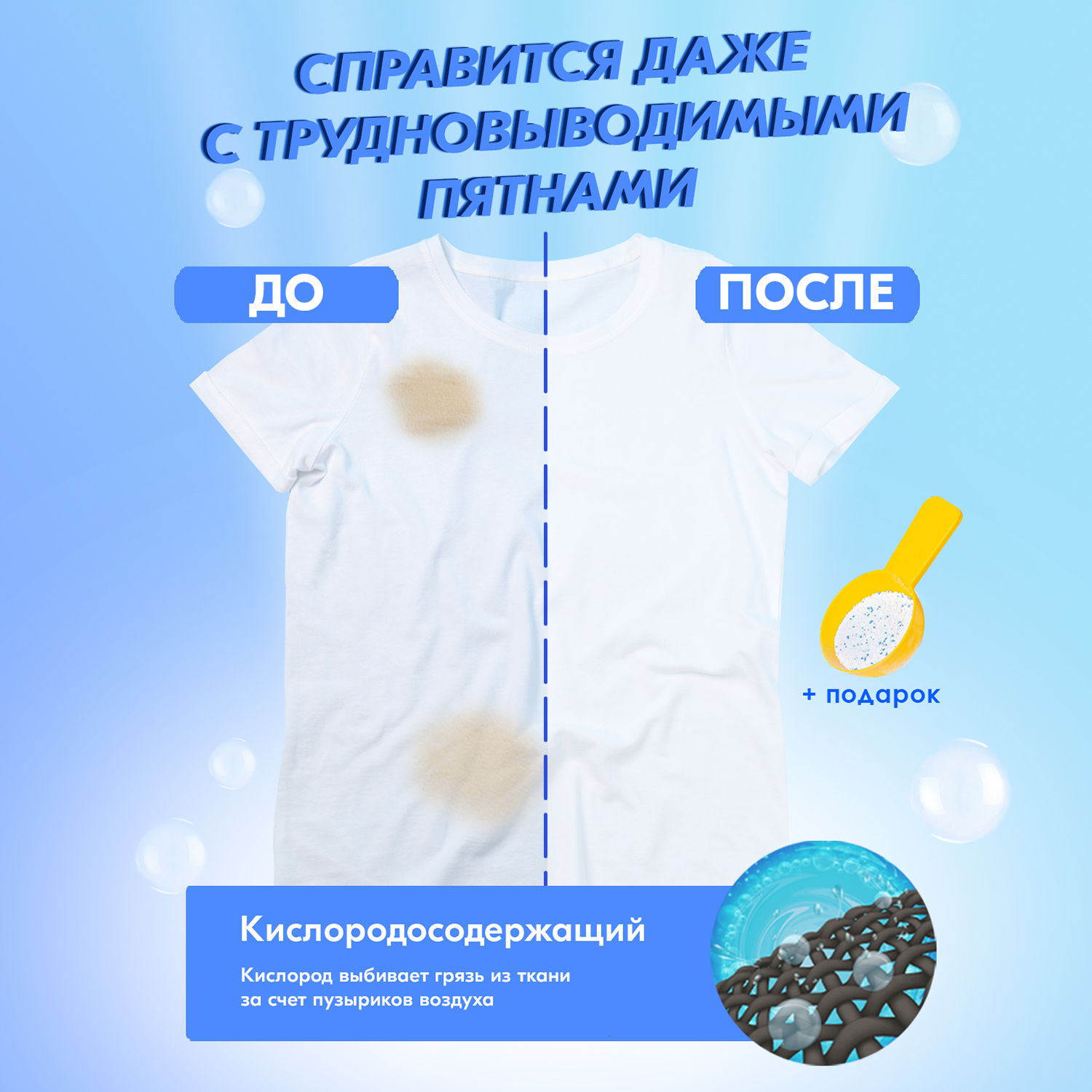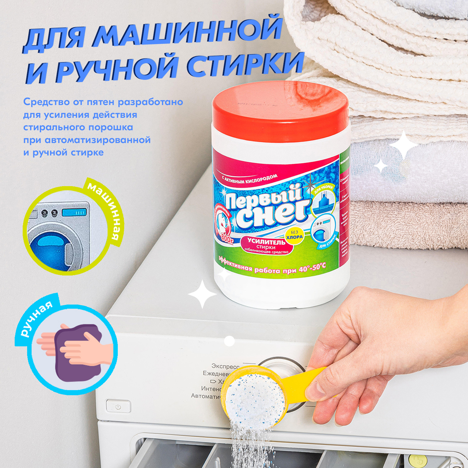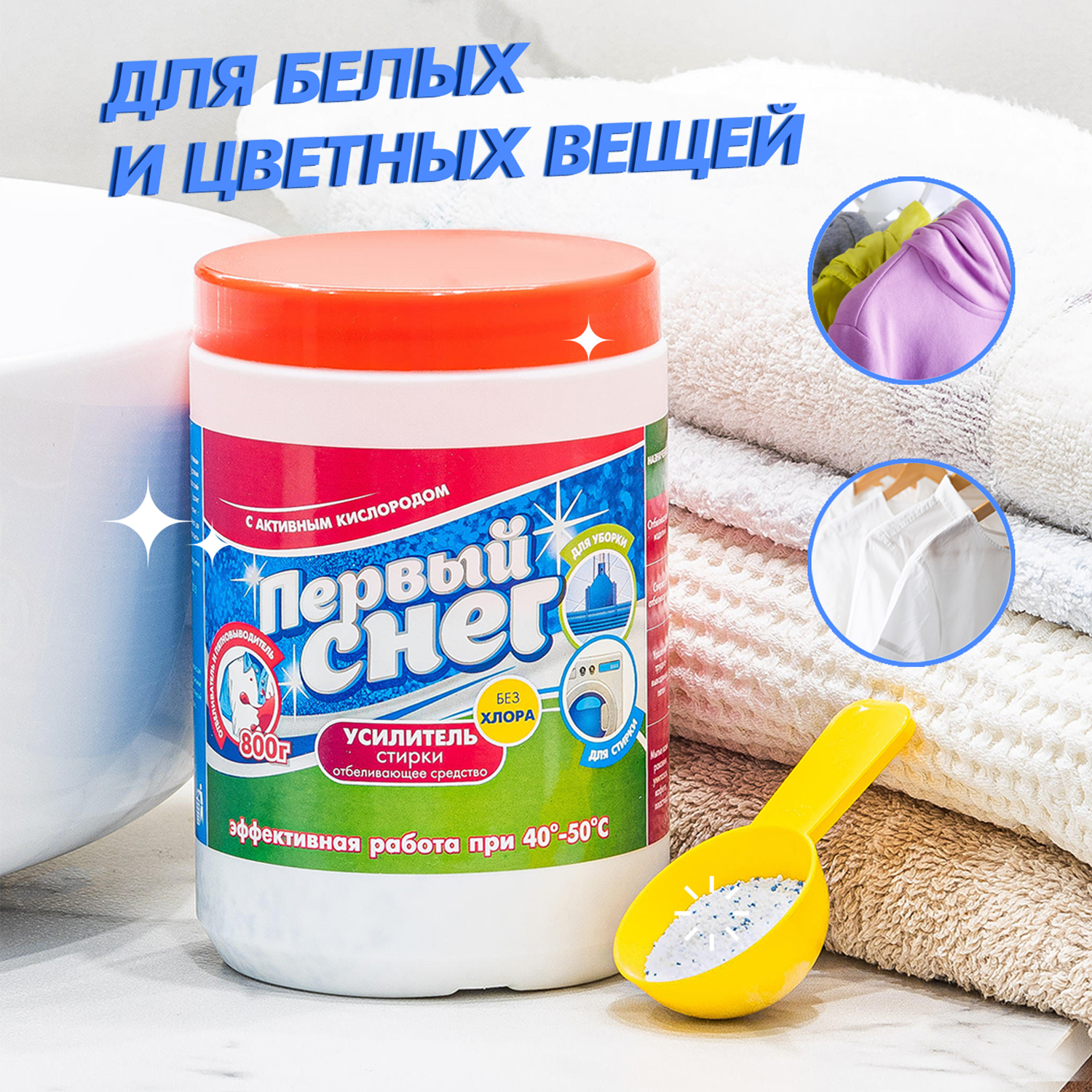Кислородный пятновыводитель для белого, цветного и детского белья/ отбеливатель/ усилитель стирки Первый снег 800г/