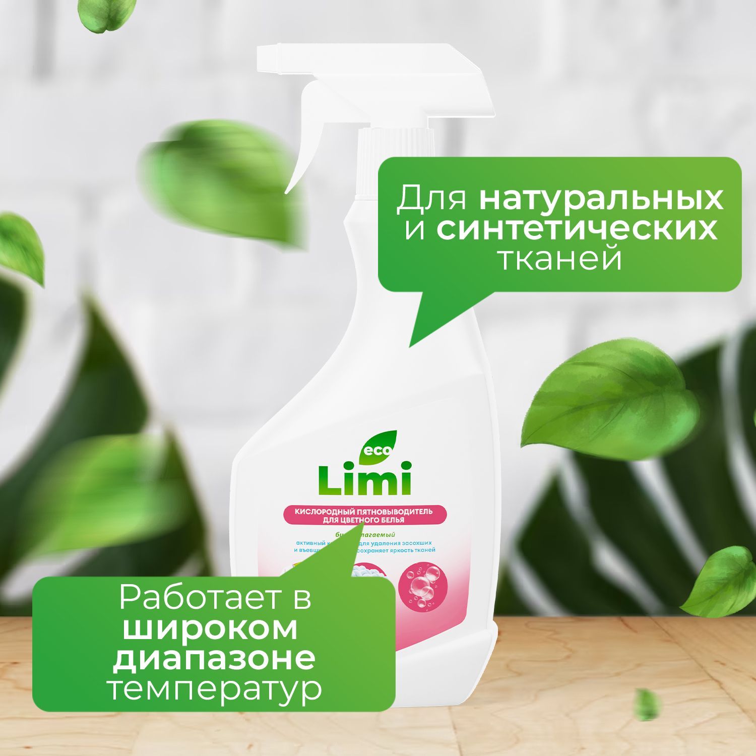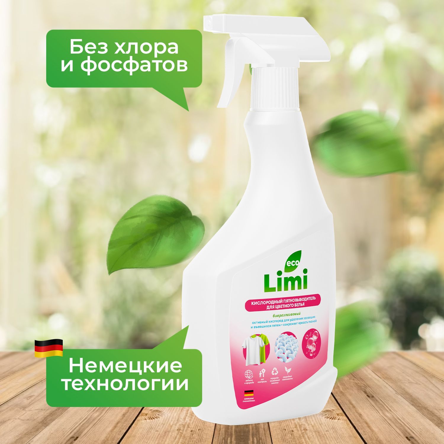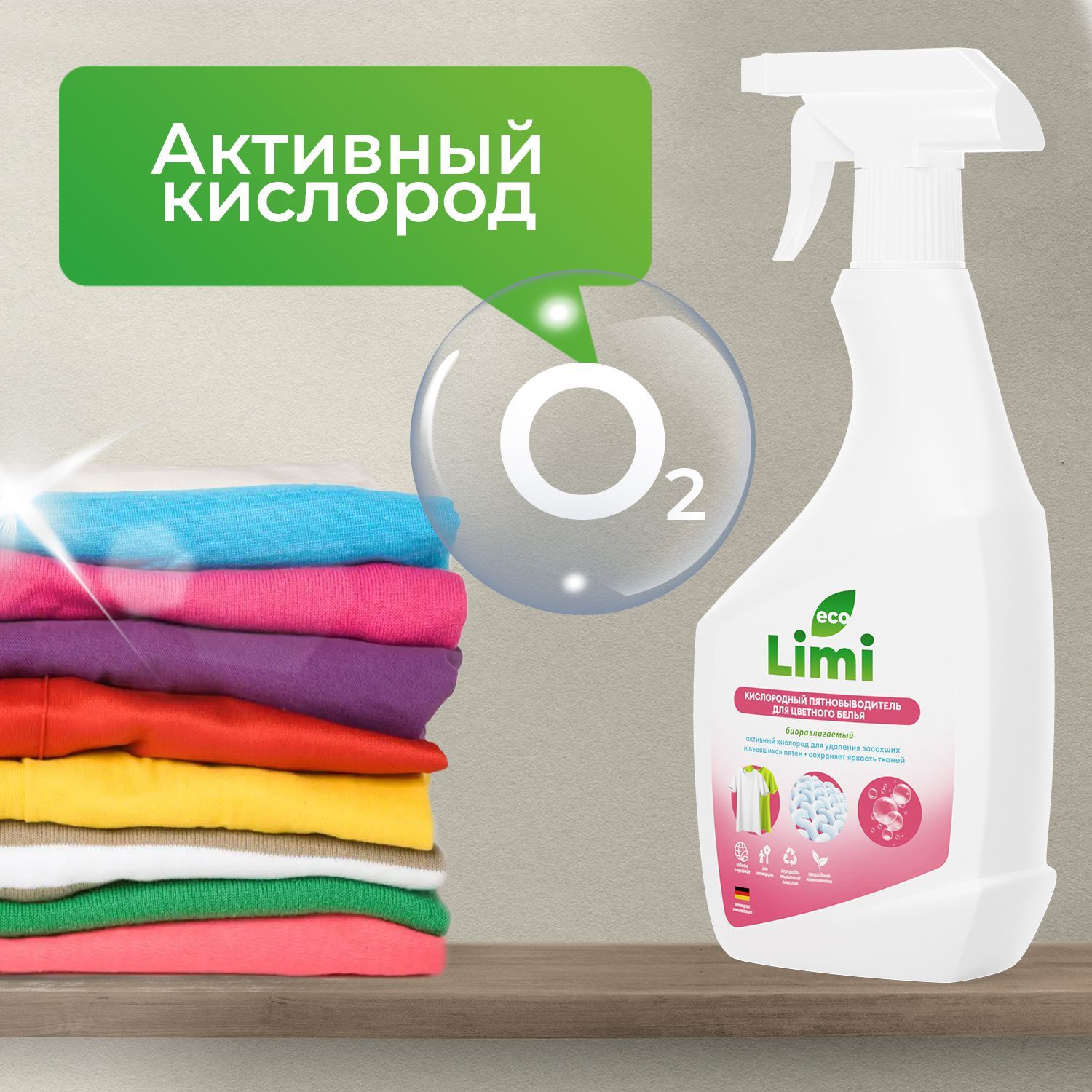 Кислородный пятновыводитель для стирки цветного белья LIMI экологичный, универсальный, эффективный спрей отбеливатель, удаление пятен, жира, ржавчины, детский и гипоаллергенный очиститель для одежды
