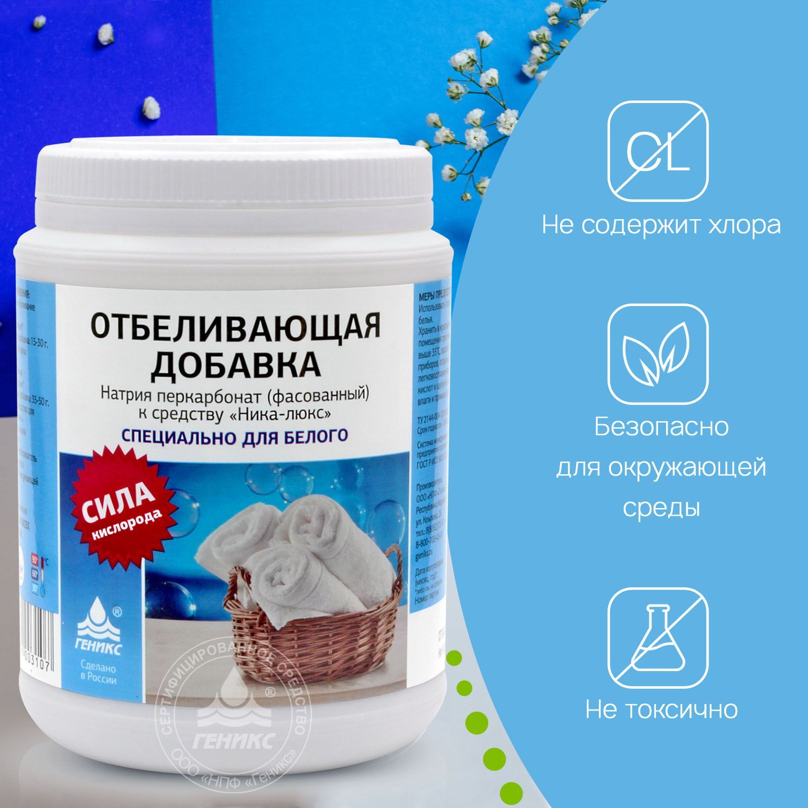Кислородный пятновыводитель отбеливатель НИКА 1200г / Натрия перкарбонат для белья 100%/ Усилитель средства для стирки