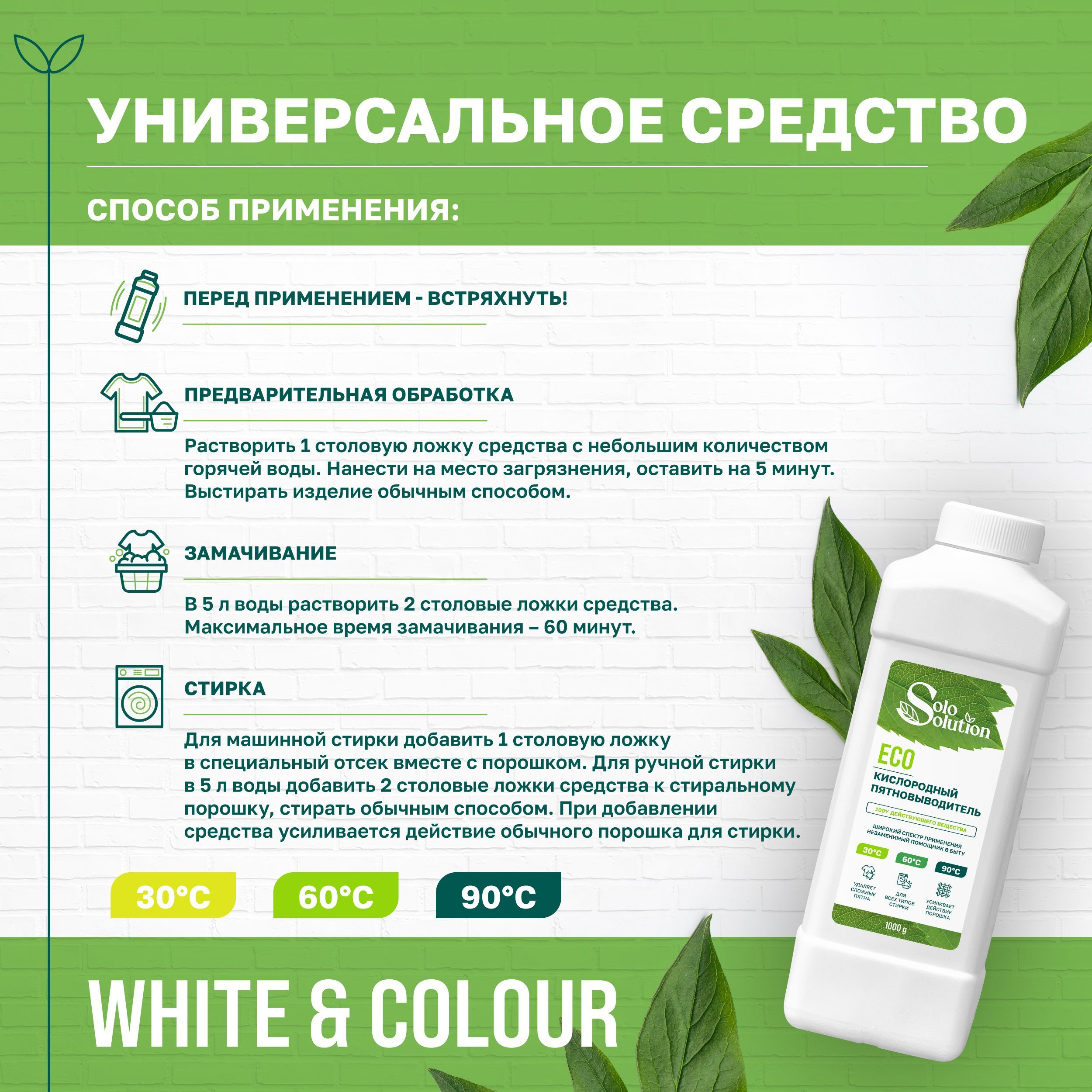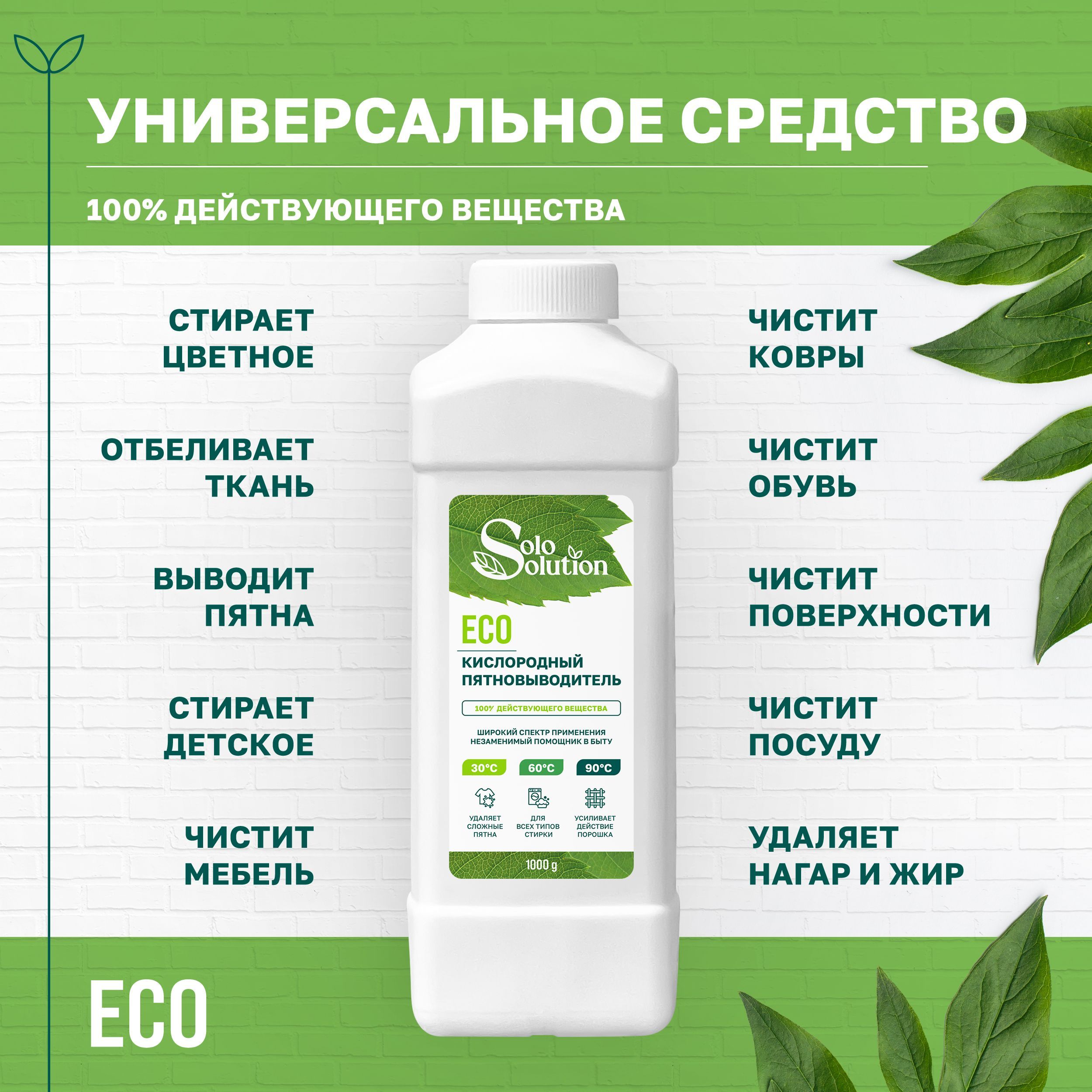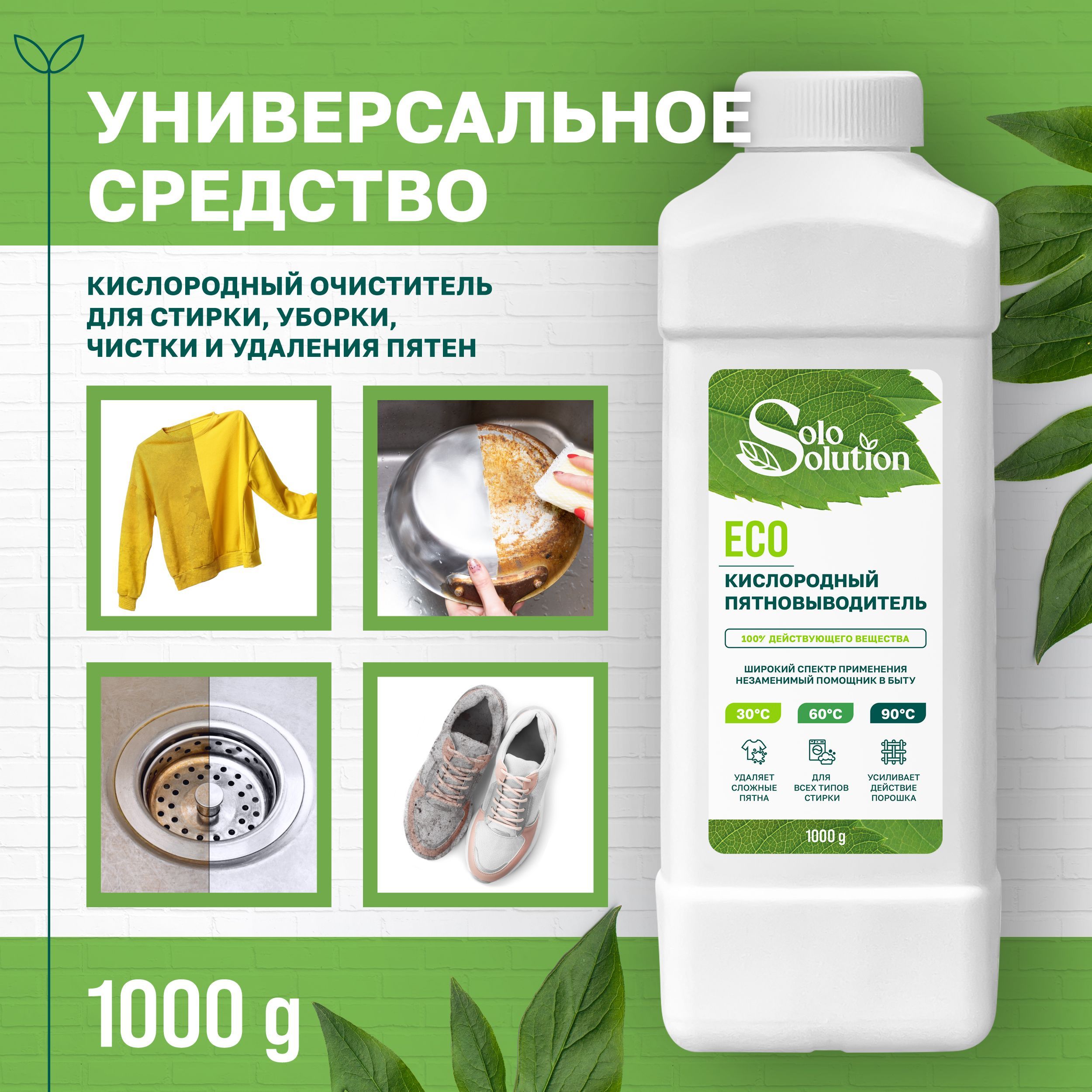 Кислородный пятновыводитель-отбеливатель SOLO SOLUTION 1 кг, 40 стирок, универсальный очиститель, перкарбонат 100%, эко средство, для цветного, для белого белья