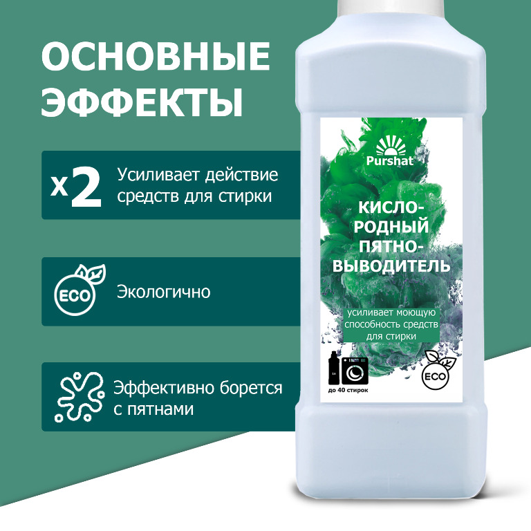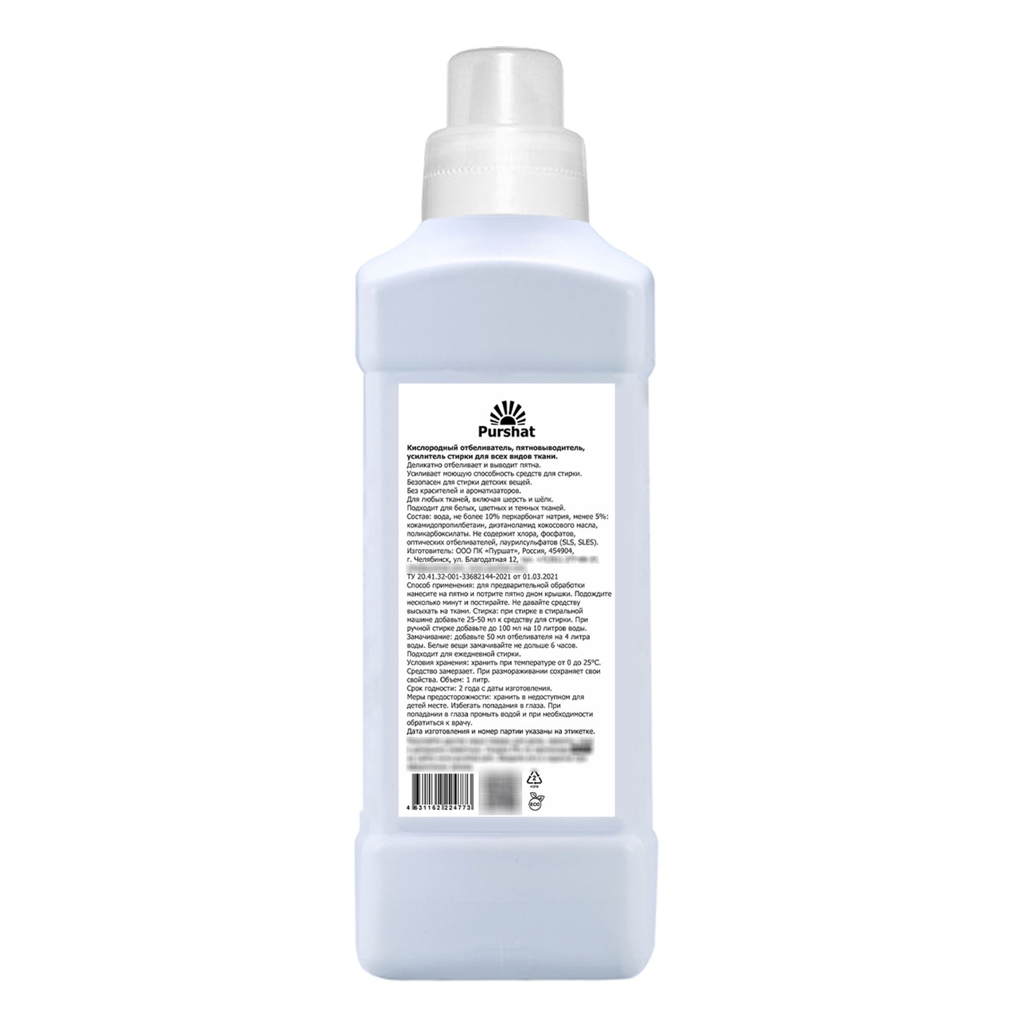 Кислородный пятновыводитель, отбеливатель, усилитель стирки для всех видов ткани Пуршат (Purshat) 1 л
