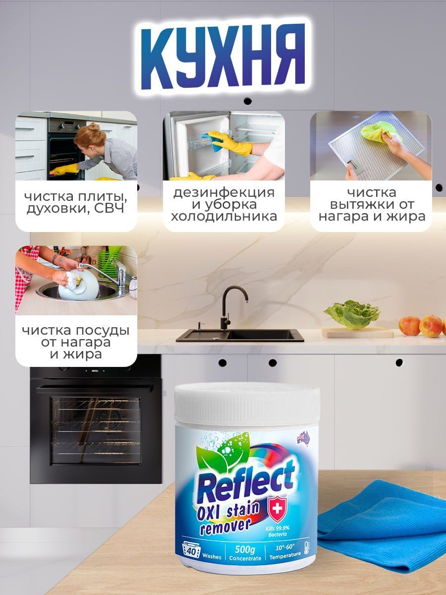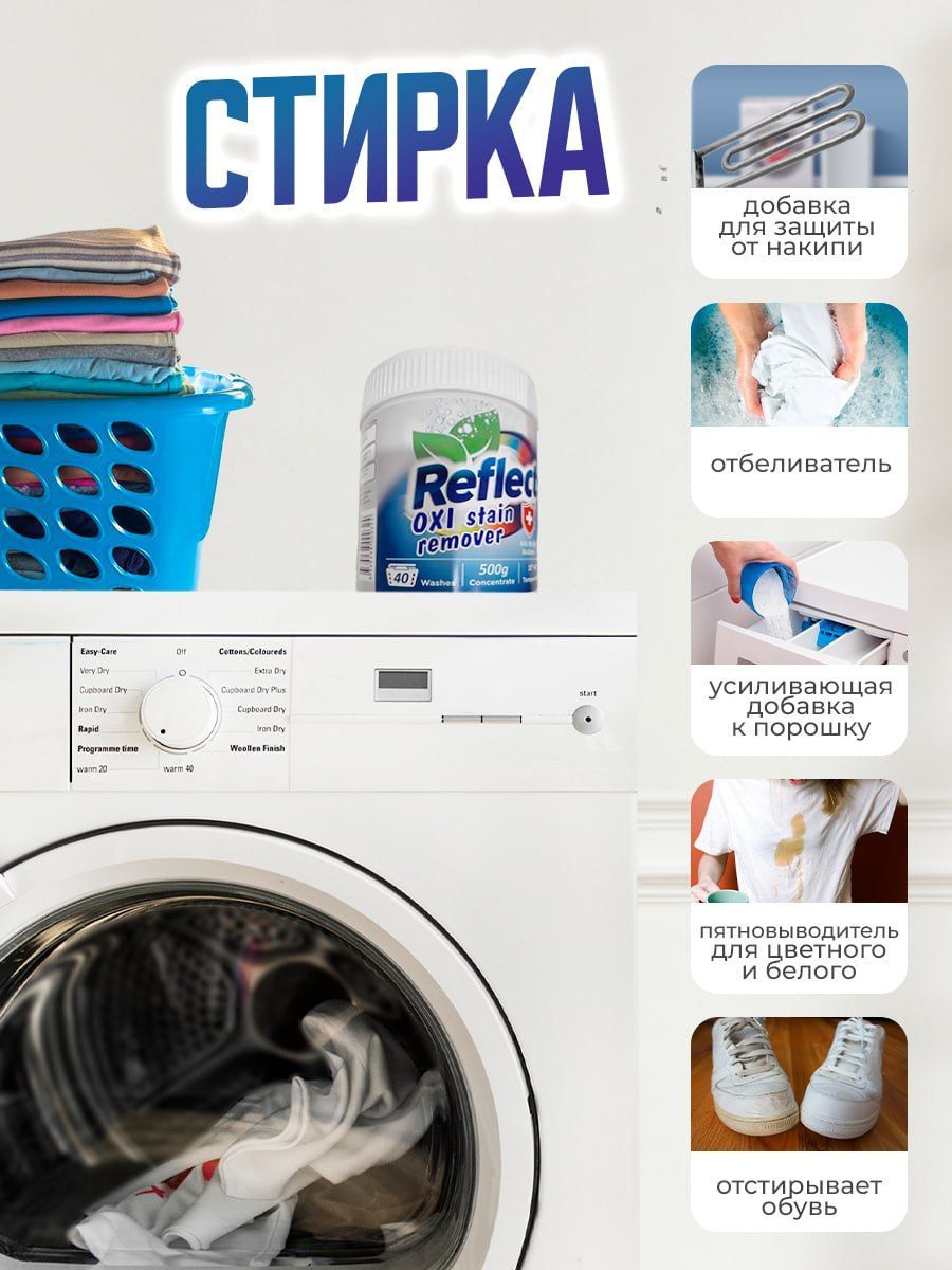 Кислородный пятновыводитель Reflect Oxi Stain Remover для белых и цветных тканей, 500 грамм