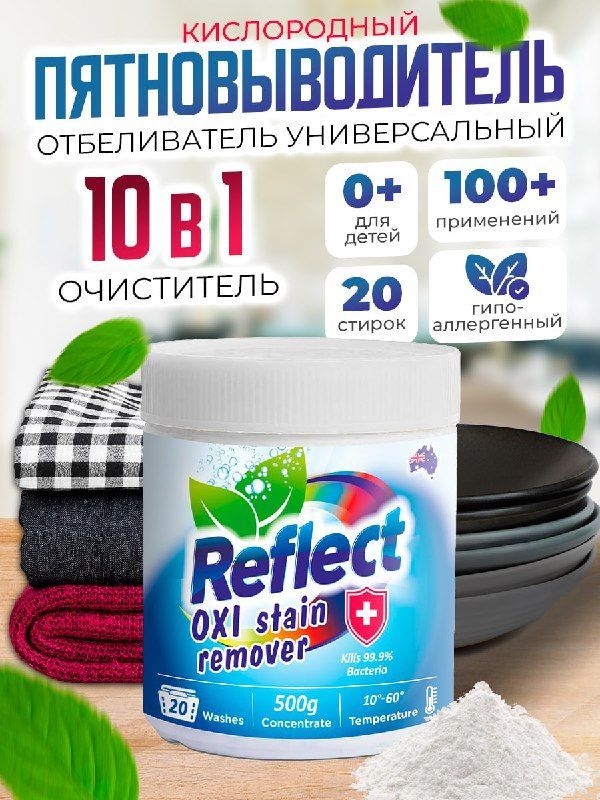 Описание: Reflect Oxi Stain Remover - кислородный пятновыводитель для белых и цветных тканей, 500 г.