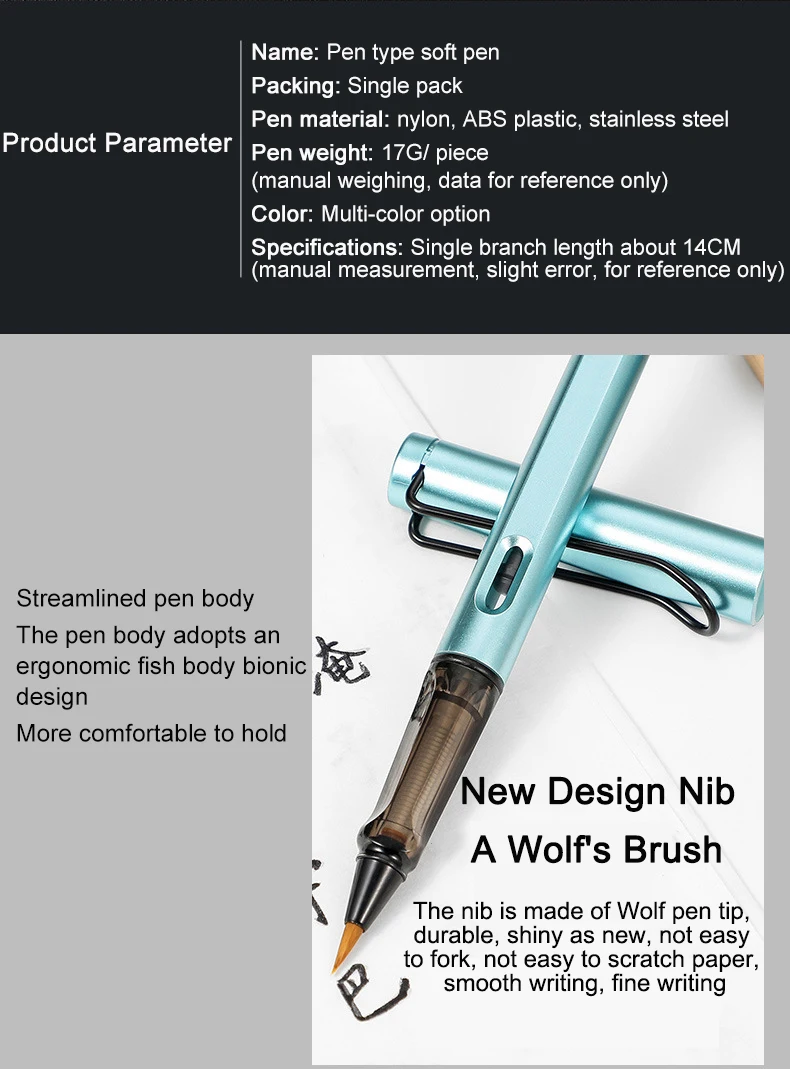 Введение продукта:Кисть в стиле пера для копирования Священных Писаний, мягкая кисть для практики каллиграфии с мягкой головкой, с мягкой головкой для пера из волчьей шерсти. Используются два метода нанесения краски