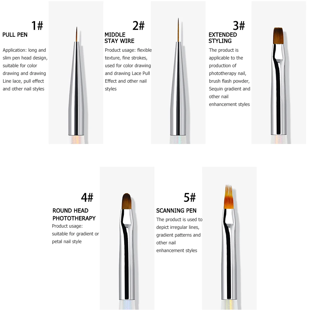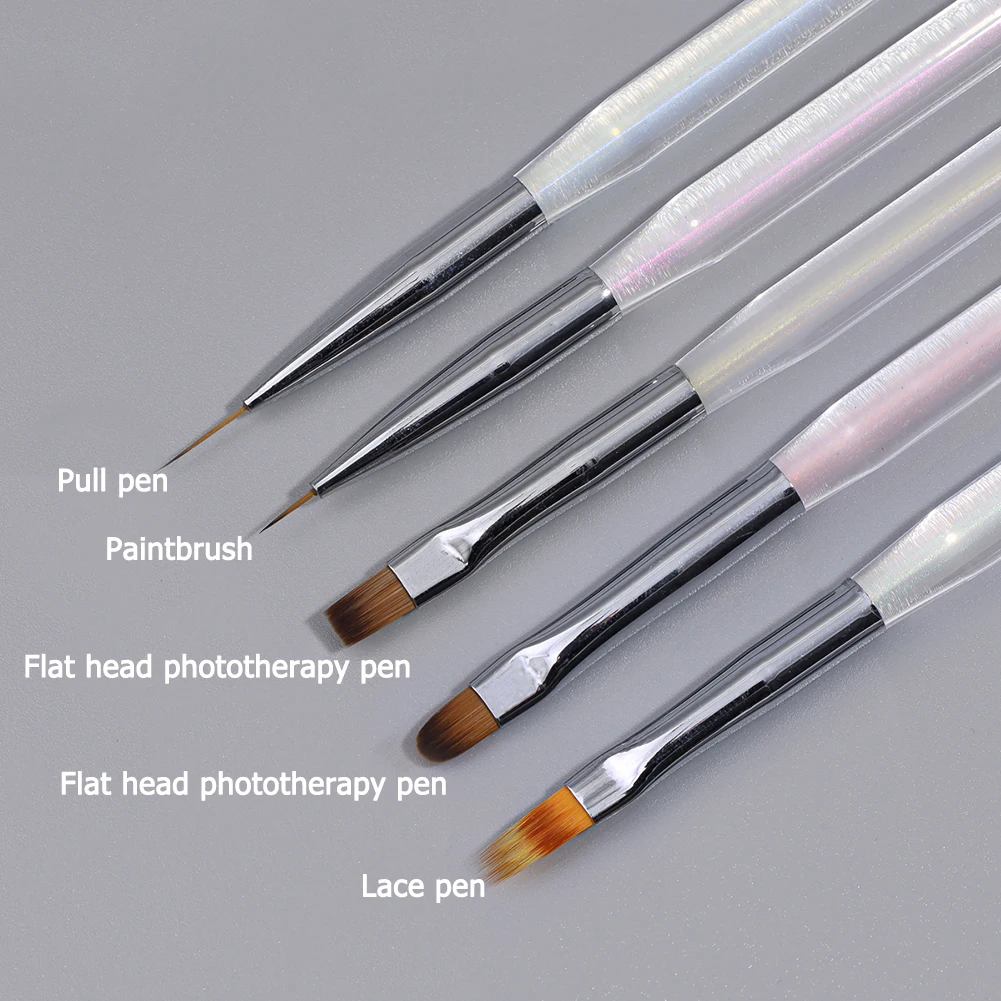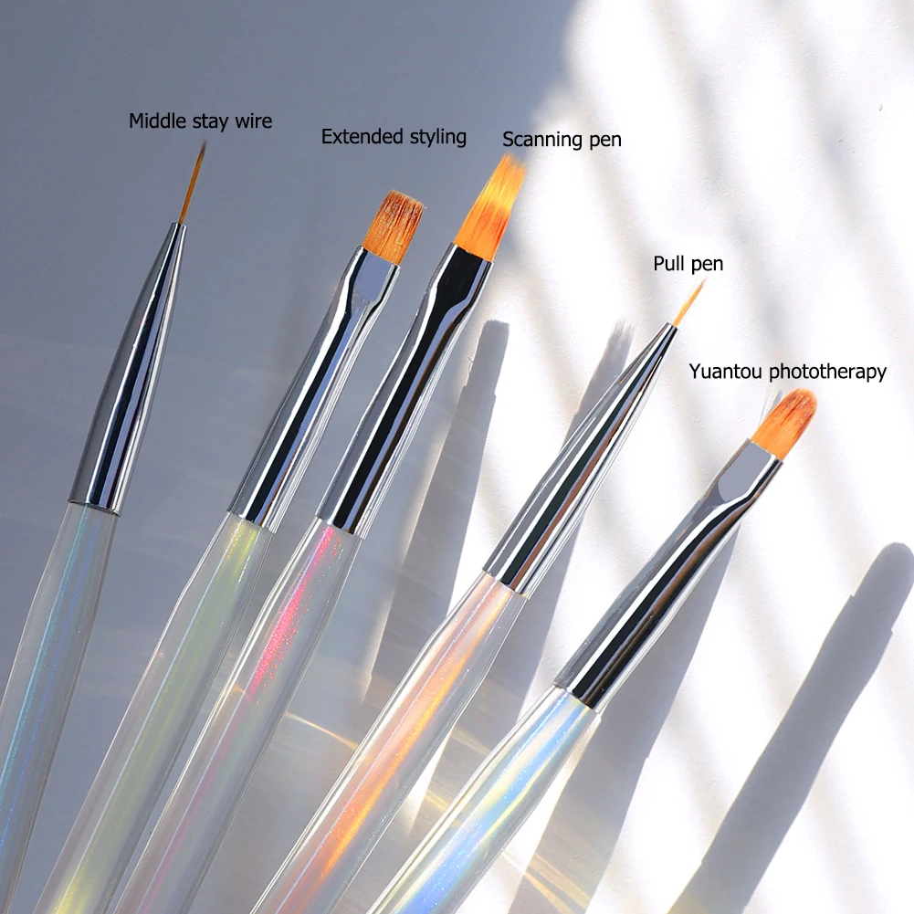 Кисть для ногтей Маникюрная Гелевая Кисть Прозрачная Аврора Macaron Жидкая пудра Резьба Гелевая Кисть Светотерапия Цветная живопись Smudge Line Ручка для рисования для дизайна ногтей Маникюрный инструмент