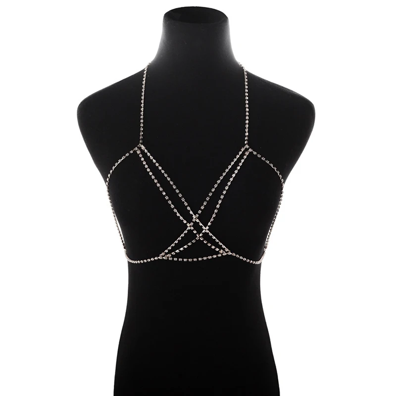 Кисточки блестящие циркониевые сексуальные пляжные свадебные аксессуары женский бюстгальтер крест бикини внутри выдолбленная цепочка для тела тонкая нагрудная цепочка для девочек
