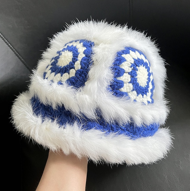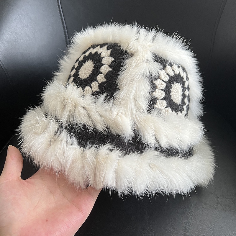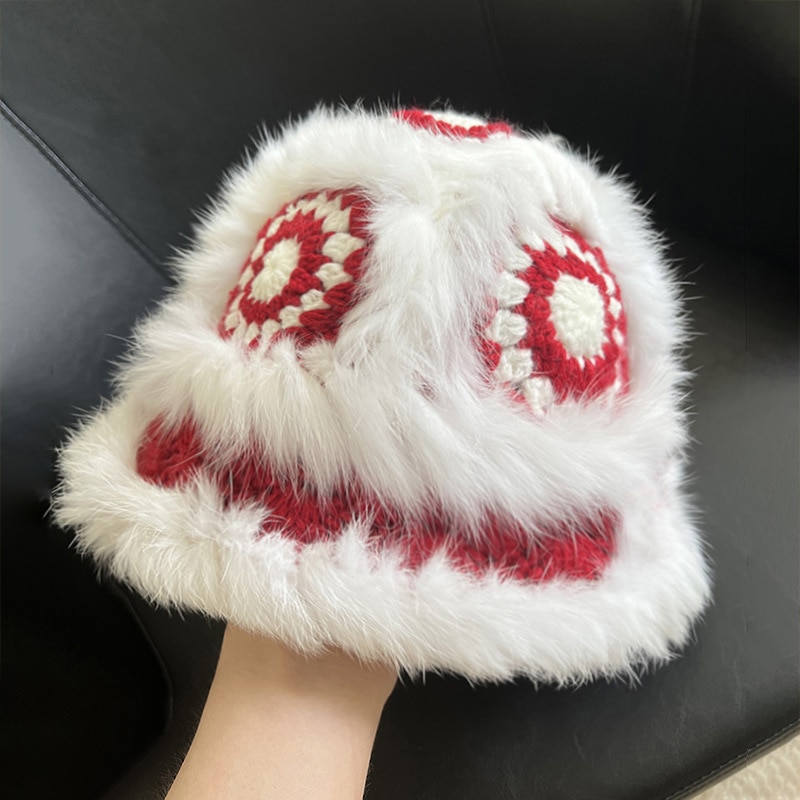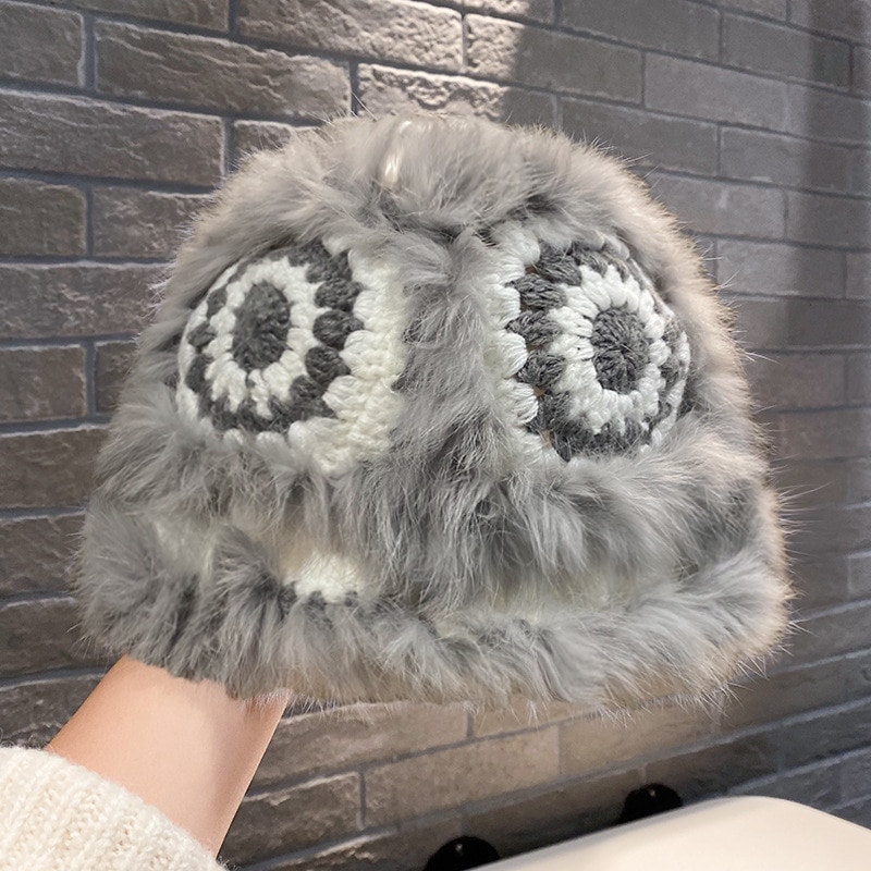 Китайские шикарные шляпы-ведерки для женщин, зимняя теплая милая плюшевая шапка с большой талией, Повседневные вязаные шапки из кроличьего меха 2023