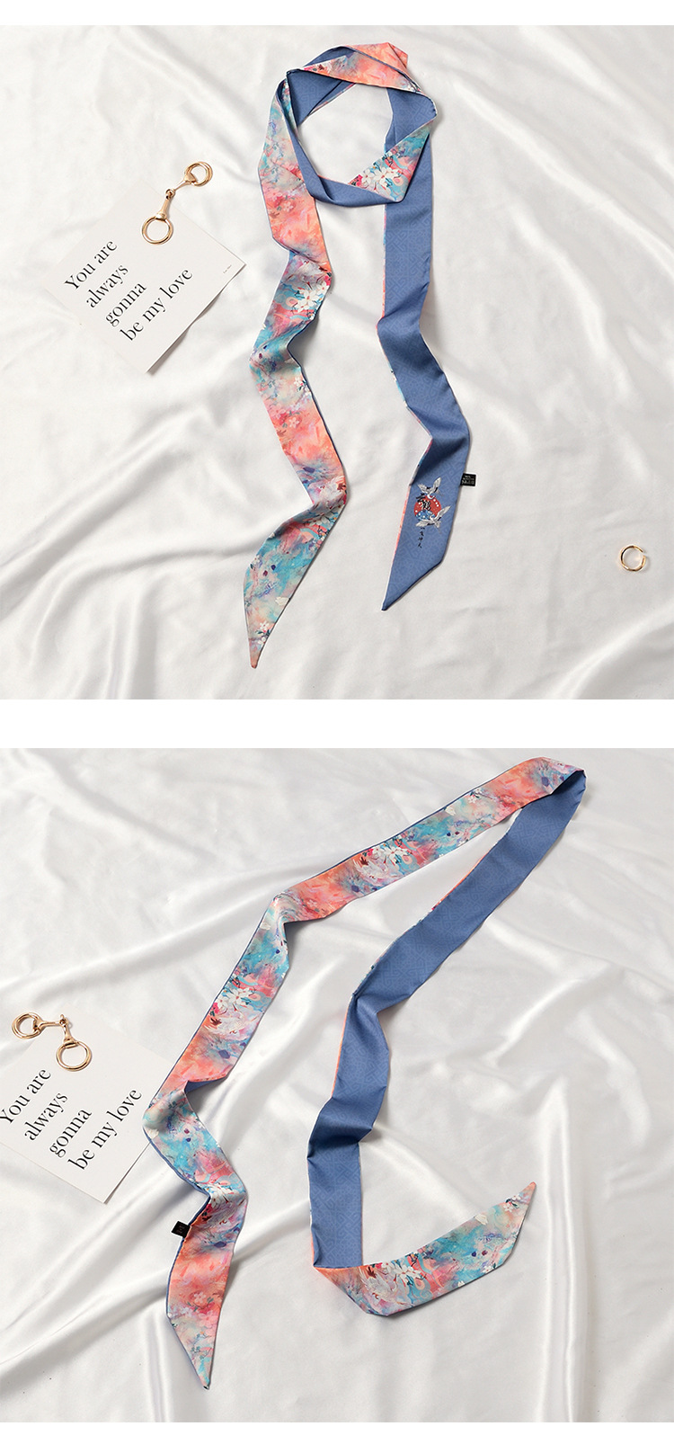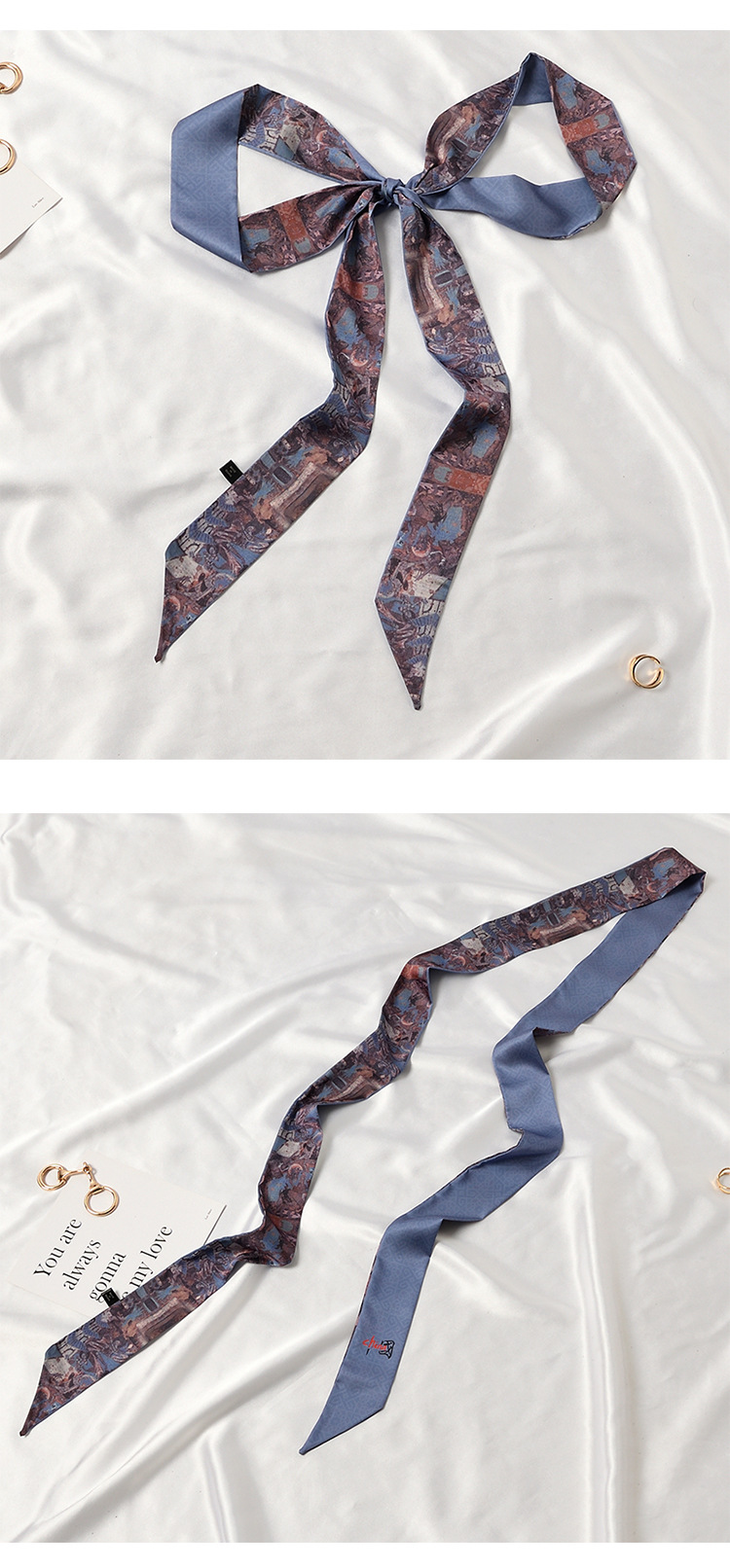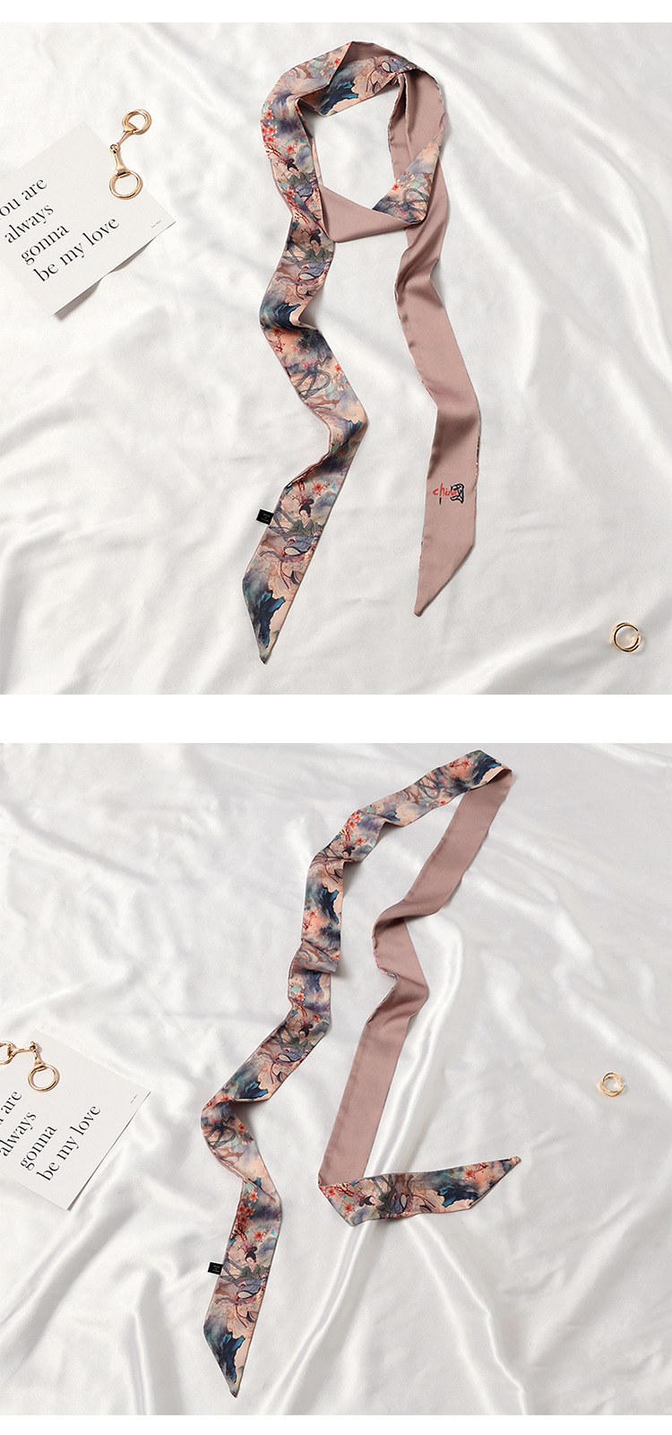 Китайский Элемент, Модные Двухслойные летние платья из атласного шелка длиной 2 м с принтом, Женский ремень с длинными ручками, ремни для сумок, лента для солнцезащитной шляпы