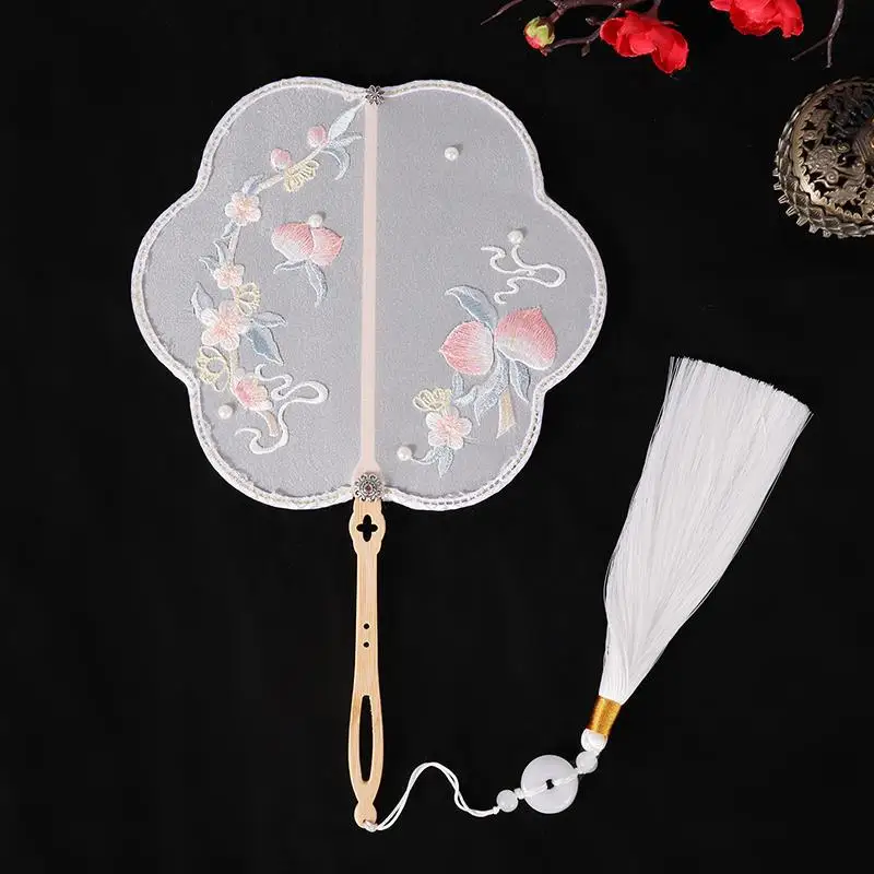 Китайский ручной веер с вышивкой цветов, ретро круглая шелковая веер с древней кисточкой, танцевальный Ручной Веер, чонсам, аксессуары для свадебной вечеринки
