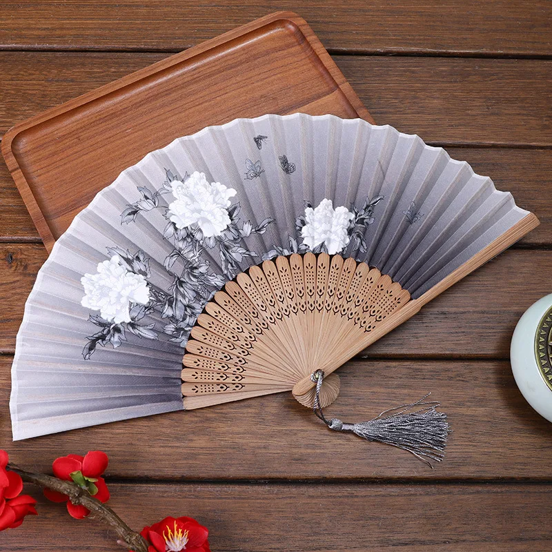 Китайский Японский Стандартный веер для классических танцев с деревянной рукояткой и кисточкой, элегантный женский веер, подарок для рукоделия, фотореквизит