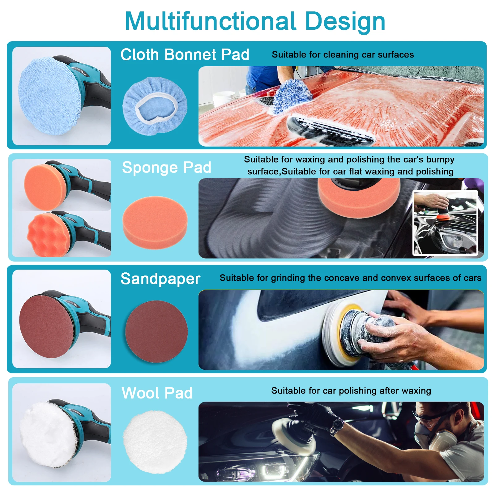 Многофункциональный дизайн:Он используется для полировки автомобиля, полировки деревянной мебели, полировки краски, полировки кожаного дивана и т. Д.