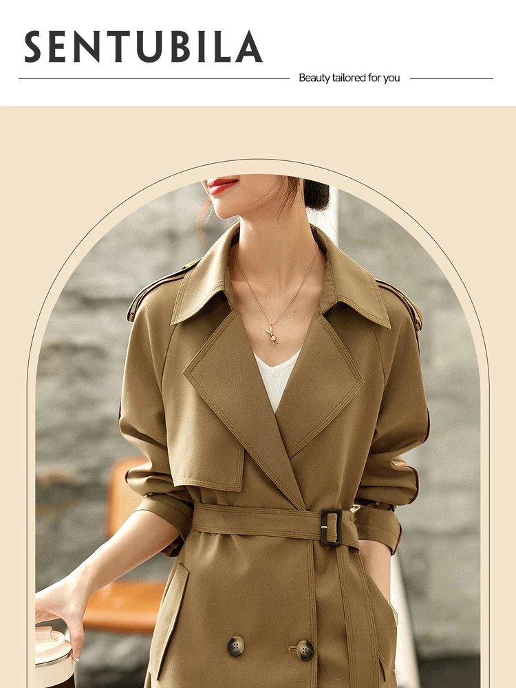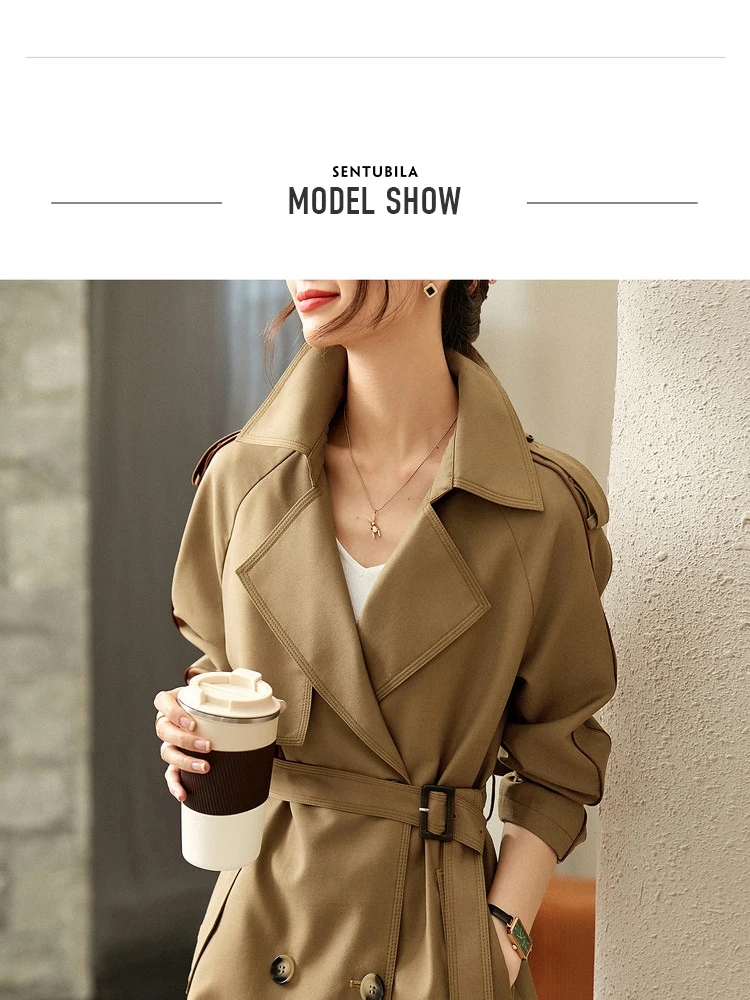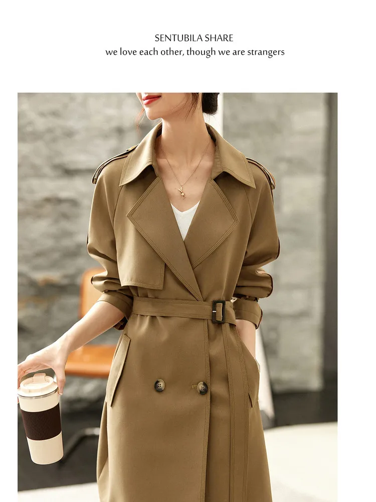 Классические двубортные Женские куртки Sentubila, Коллекция весна-осень-зима 2023, элегантные длинные куртки, верхняя одежда, женская одежда