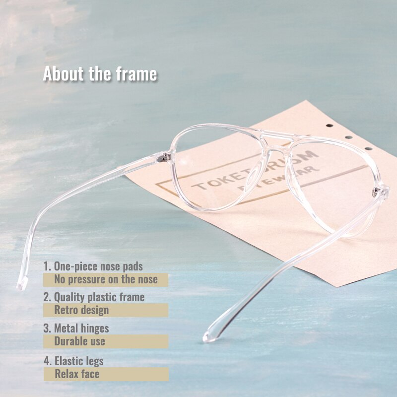 Классические Прозрачные очки-авиаторы Toketorism, пластиковые оправы для женщин и мужчин, простые очки 1342