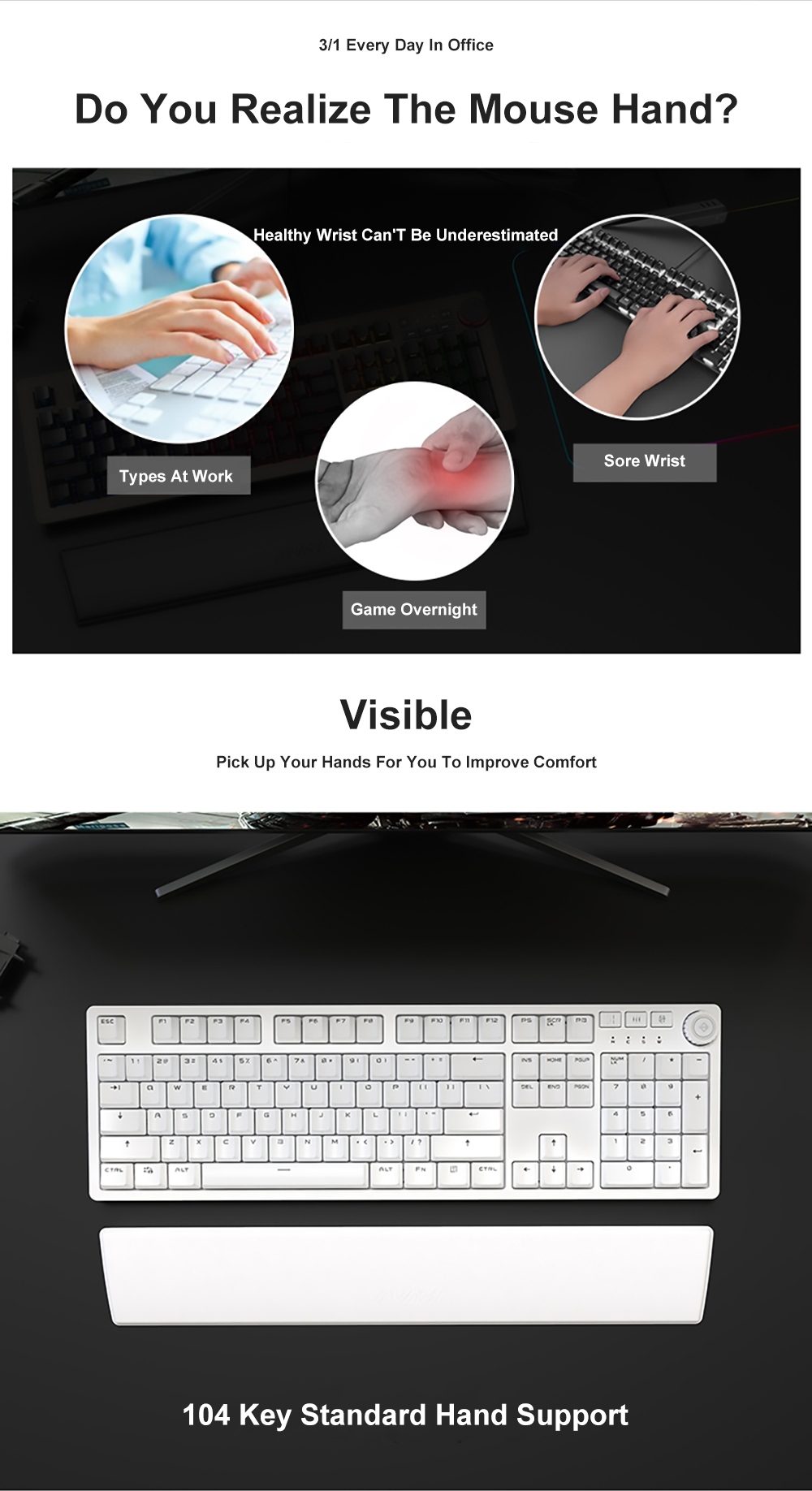 Клавиатура AJAZZ механическая с поддержкой запястья, 61/87/104 клавиши