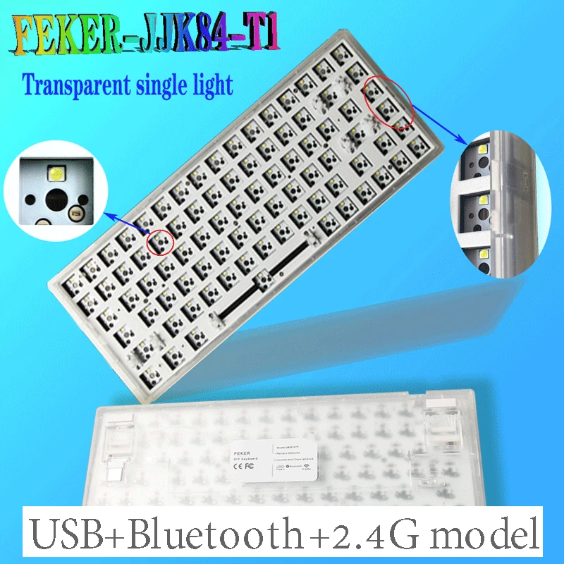 mechanical keyboard JJK84 T1 with single color LED transparent shell